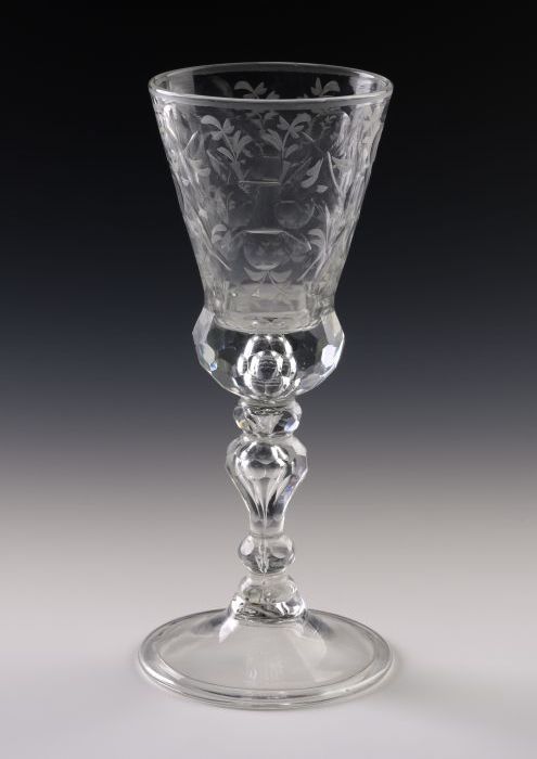 Kelkglas geslepen en gegraveerd met ranken en 'appels'