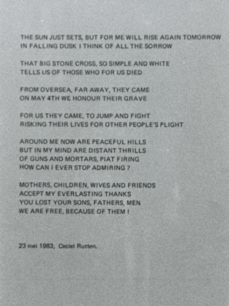 Foto van de tekst van het gedicht The sun just sets ...