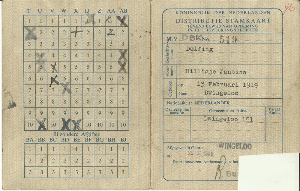 Distributiestamkaart op naam van Hilligje Jantina Do...