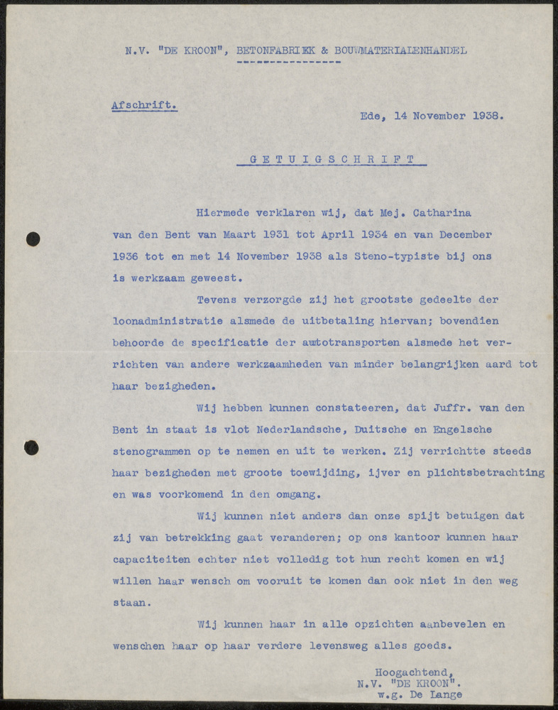 Levensloop L.A. de Bruin in Nederlands en Duits gesc...