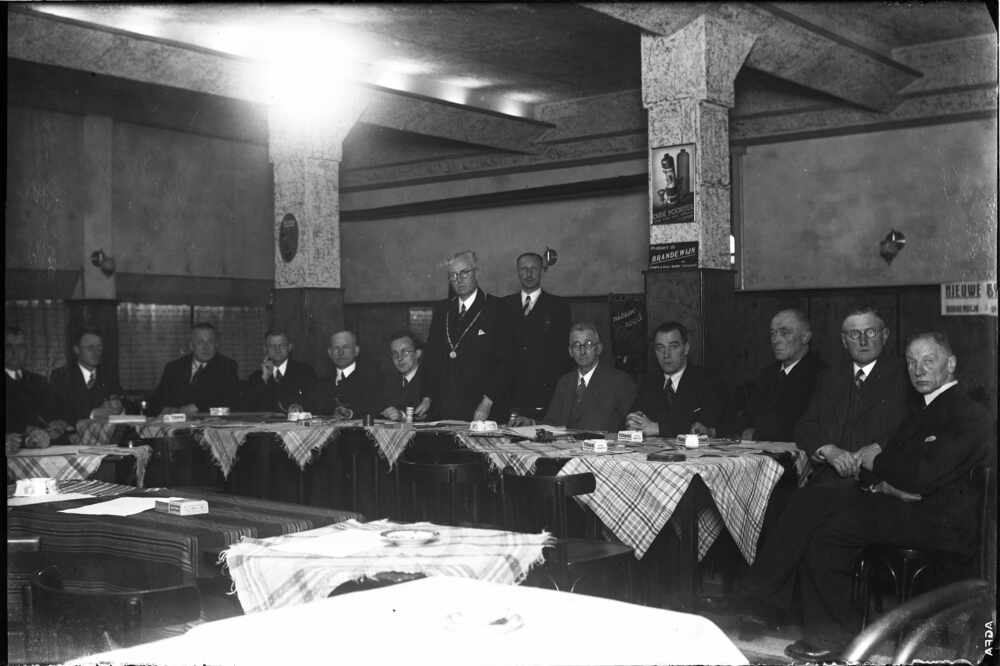 Foto, voorstellende een gemeenteraadsvergadering in ...