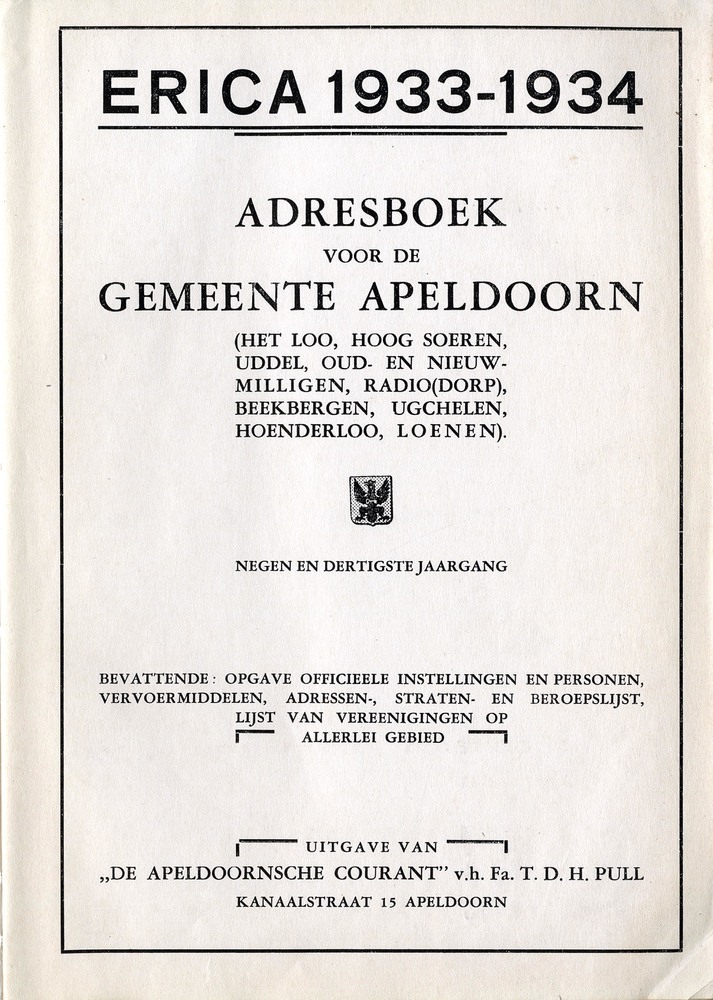 Erica 1933-1934 : adresboek voor de gemeente Apeldoo...