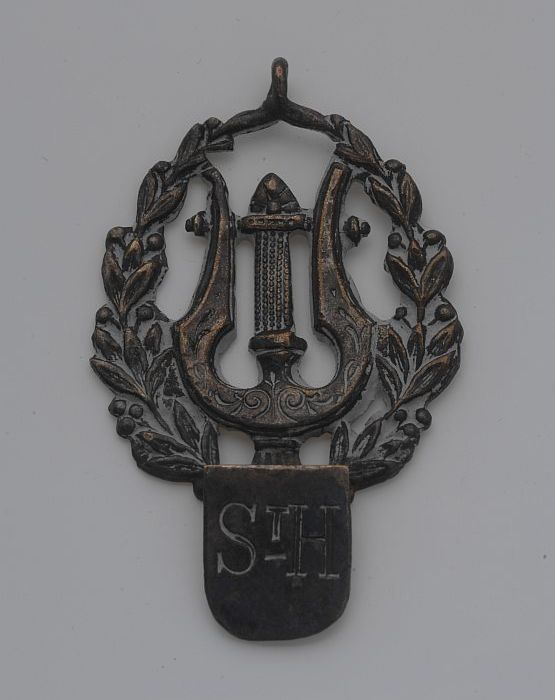 Medaille met lier in lauwerkrans en "St. H"
