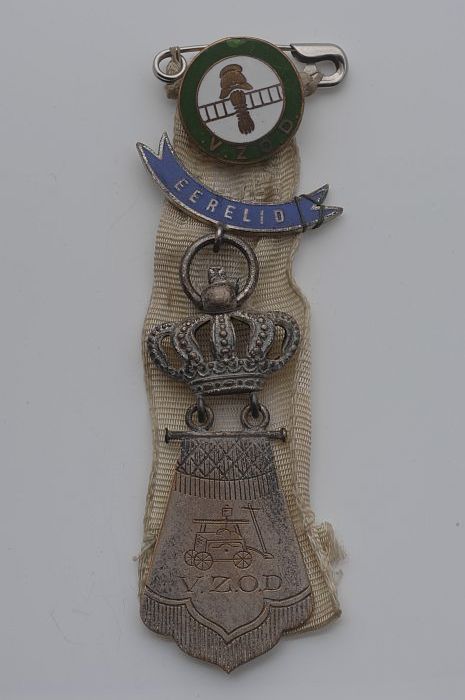 Speld, groen en wit, met "R.V.B." en helm