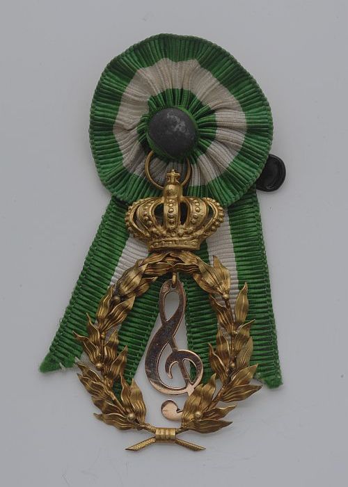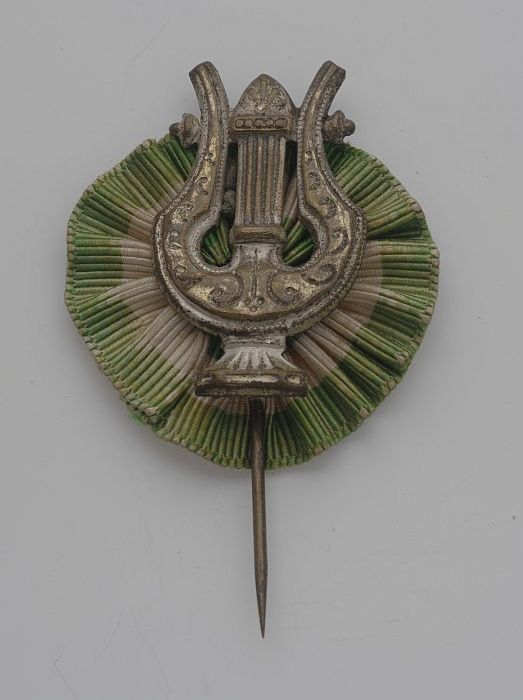 Speld met groen-wit-groene kokarde met muzieksleutel...