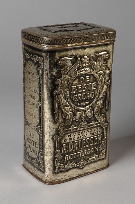 Rechthoekig cacaoblik met scharnierend deksel, "A. D...