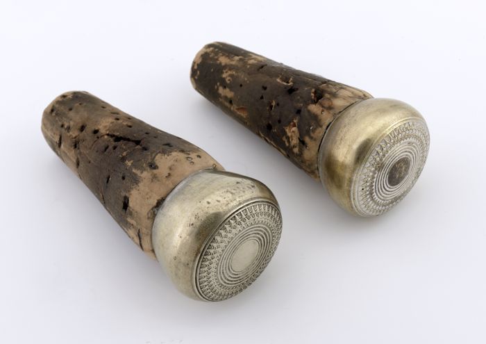 Twee zilveren flessenstoppen
