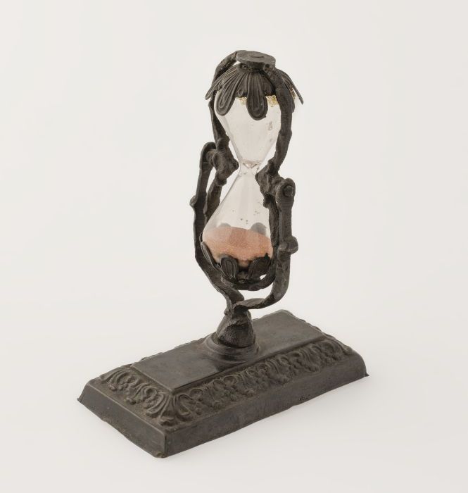 Kleine zandloper in versierde houder op rechthoekige...