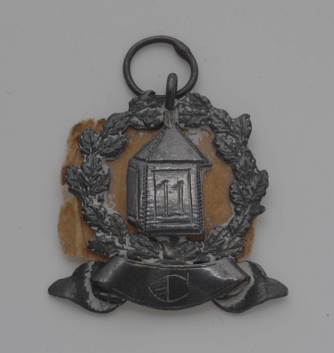 Medaille aan ringetje met lantaren "11" in lauwerkrans