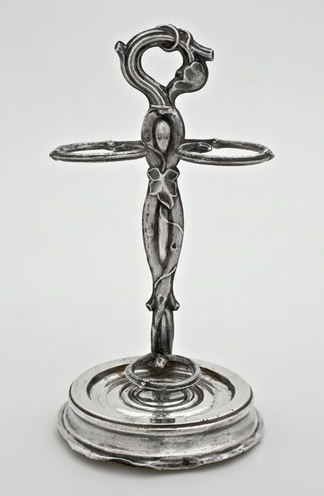 Verzilverde standaard met twee armen, op voet