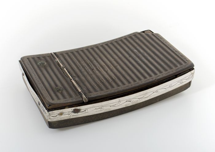 Bruin langwerpig doosje met zilveren rand
