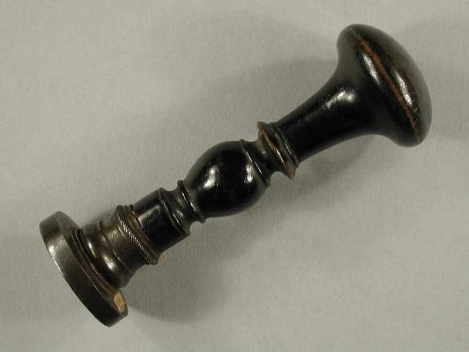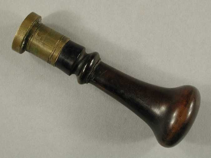 Koperkleurige ovale zegelstempel met rode steen, met...