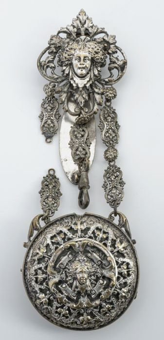Rond zilveren doosje met mannenportret in reliëf