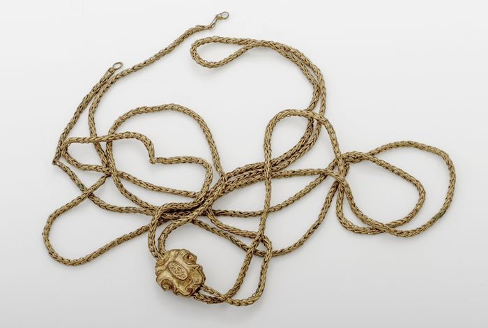Zilveren dop met bloemen, bladeren en ketting