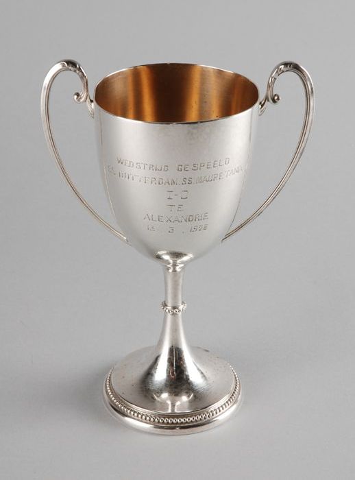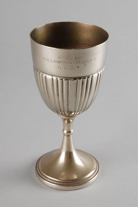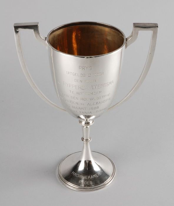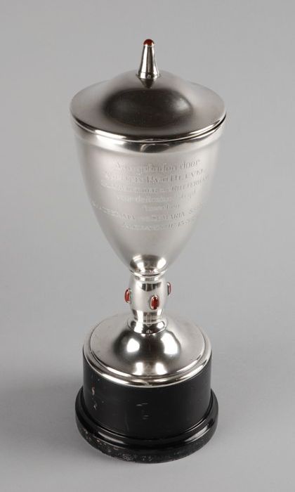 Zilveren molenbeker met opschrift "Gift van den Heer...
