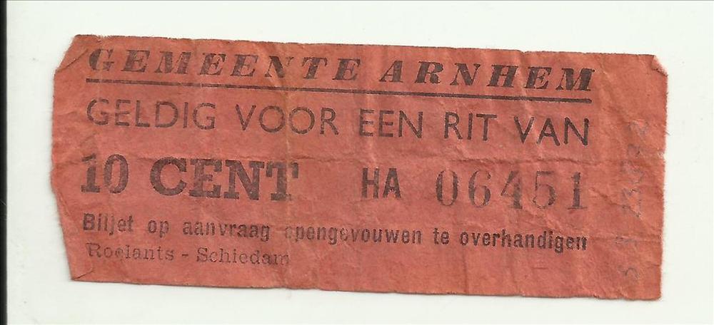 Vervoerskaartje gemeente Arnhem, 10 cent