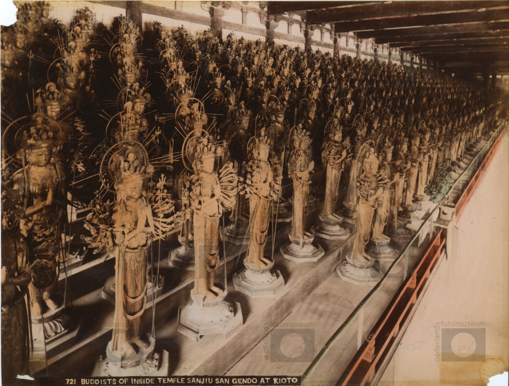 Het interieur van de Sanjiusangen-do tempel, Kyoto, ...