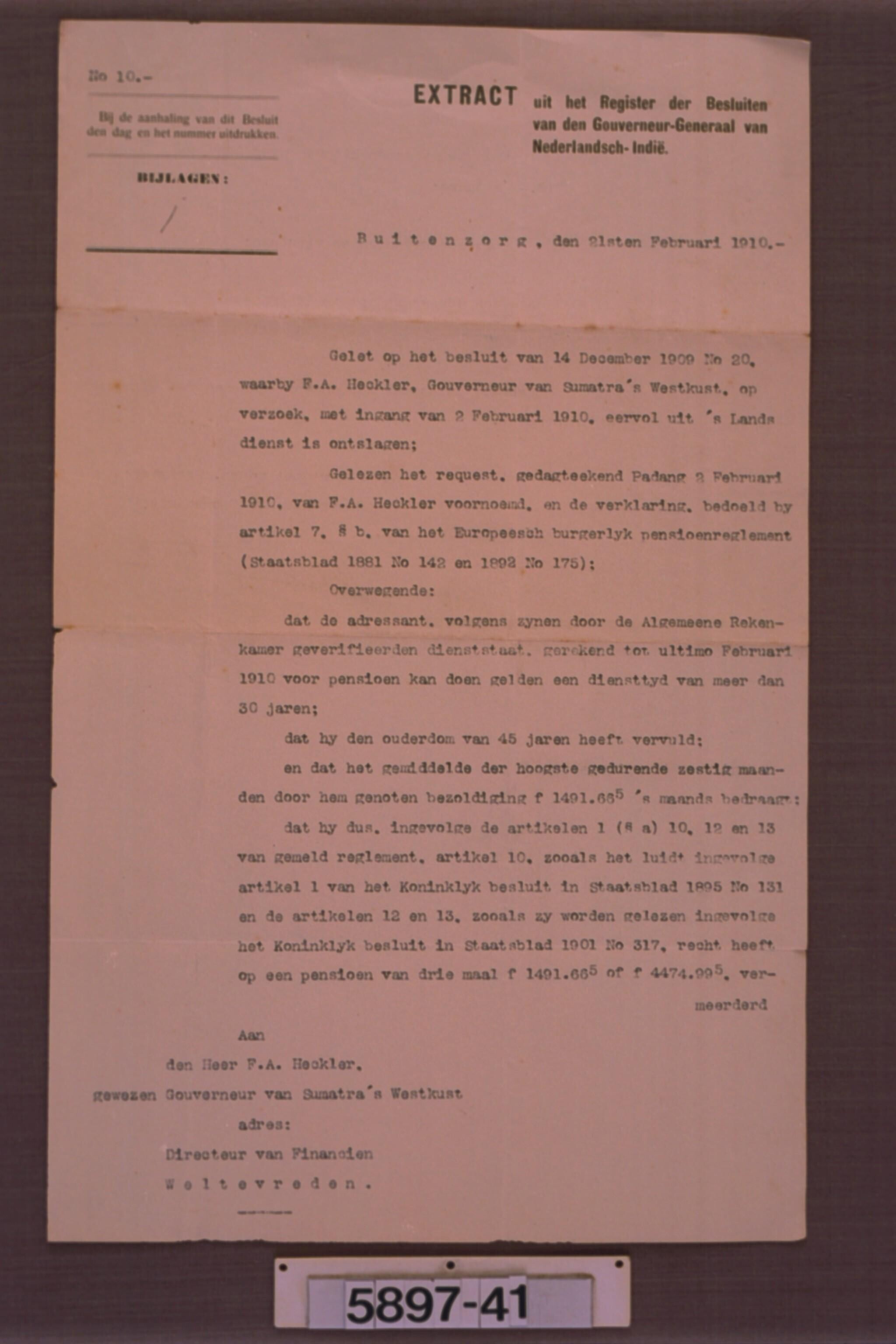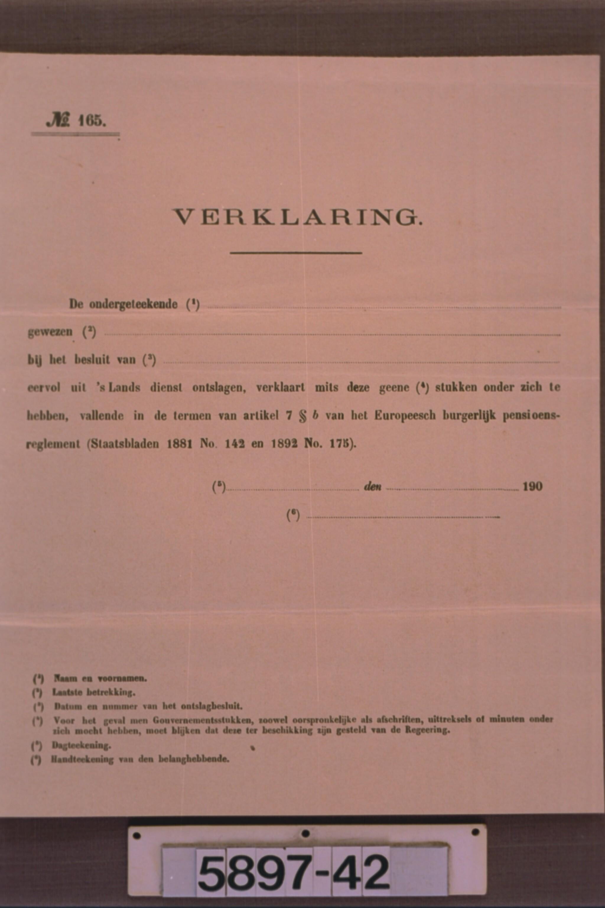 Document betreffende het eervol ontslag uit 's Lands...