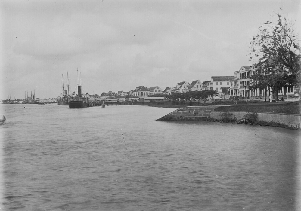 Gezicht op het Gouvernementsplein langs de Waterkant