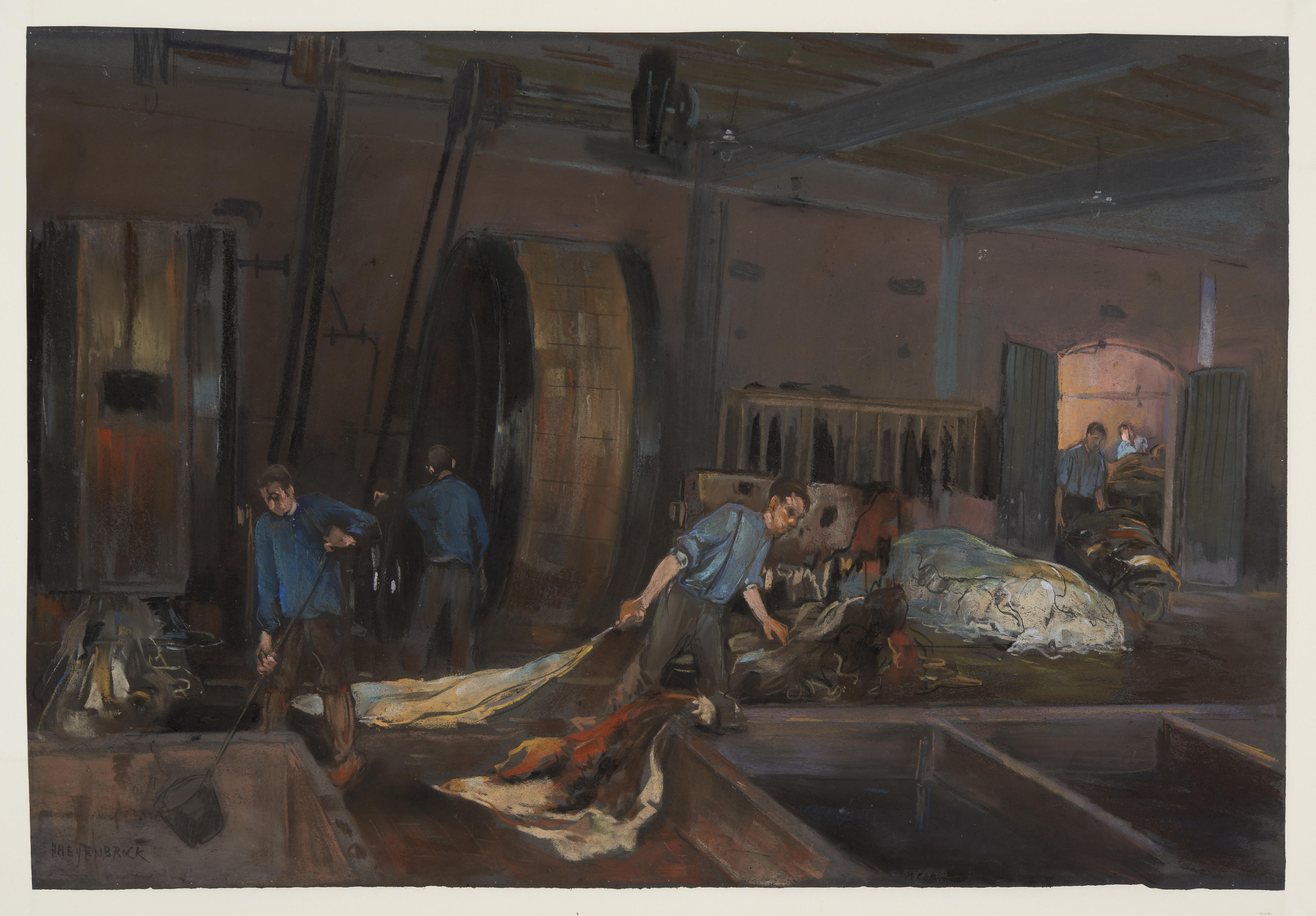 Interieur van een leerlooierij, 1925–1935