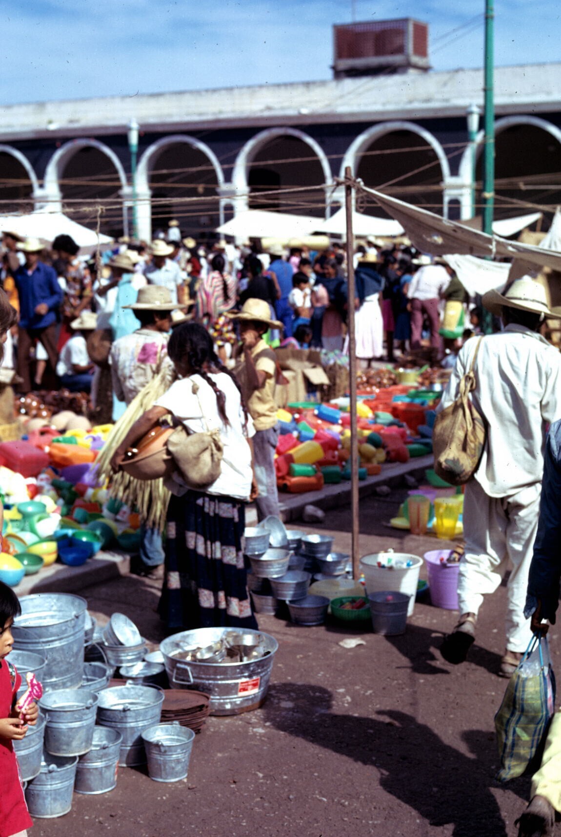 markttafereel met aardewerkverkoop; NB tecolpetes (d...