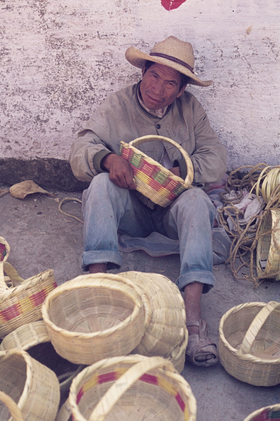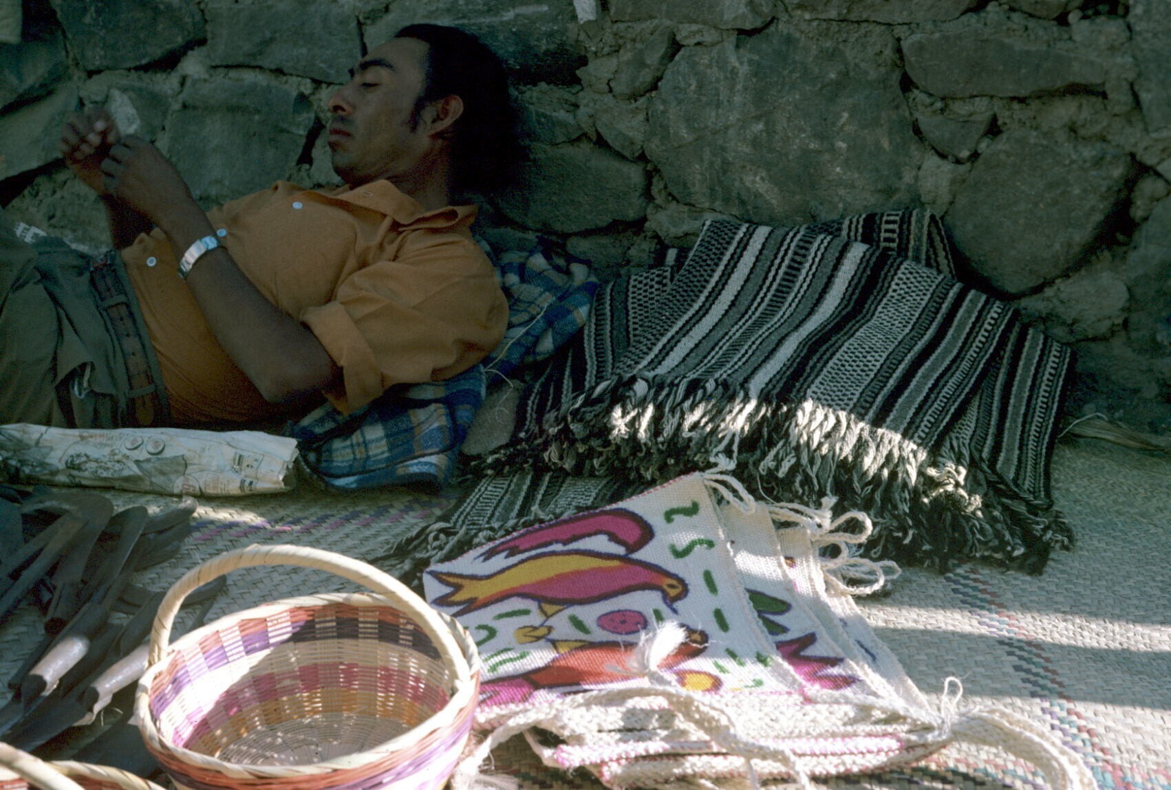 man, rebozos (omslagdoeken) vervend in añil (indigo)...