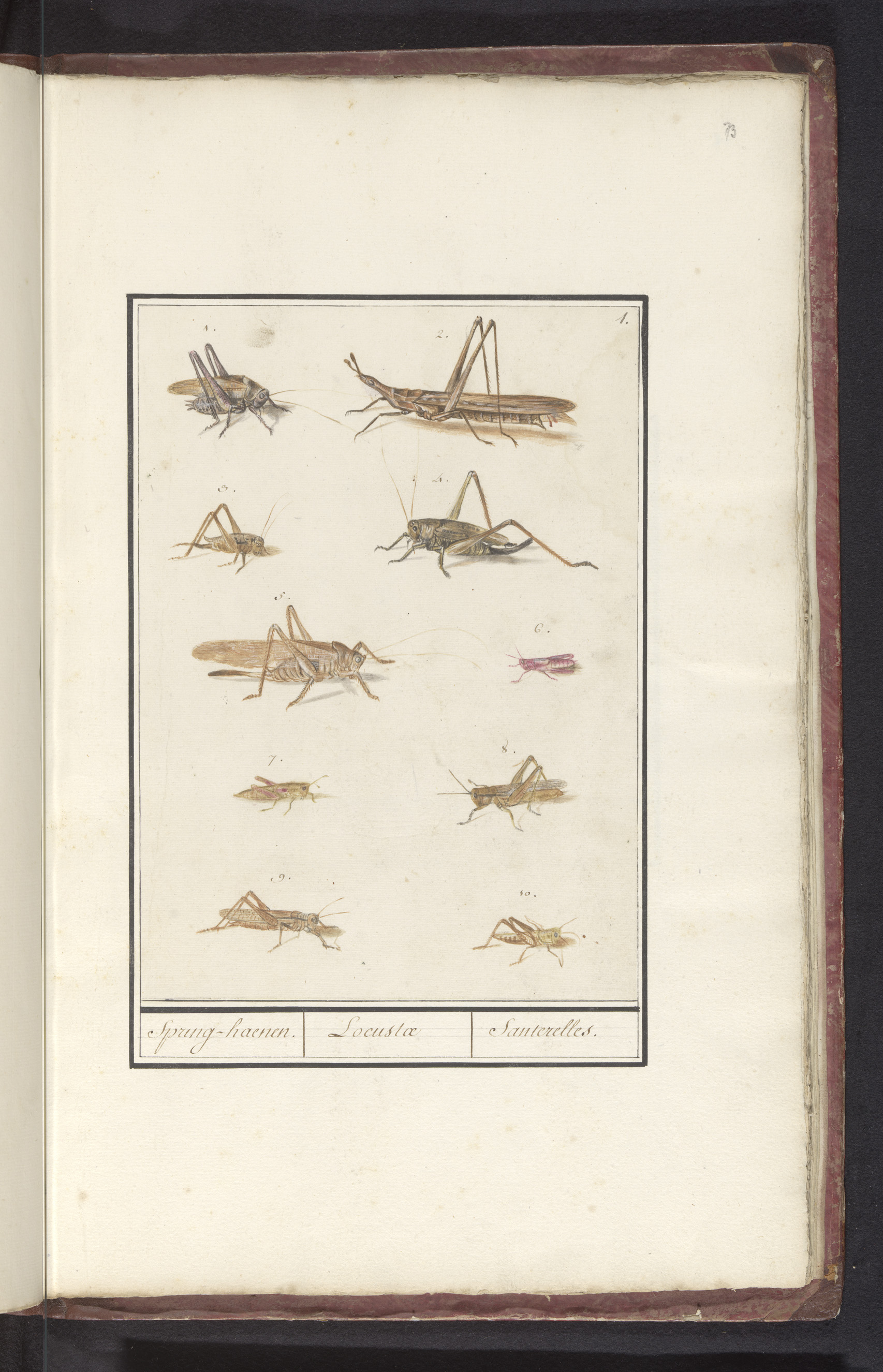 Blad met tien sprinkhanen