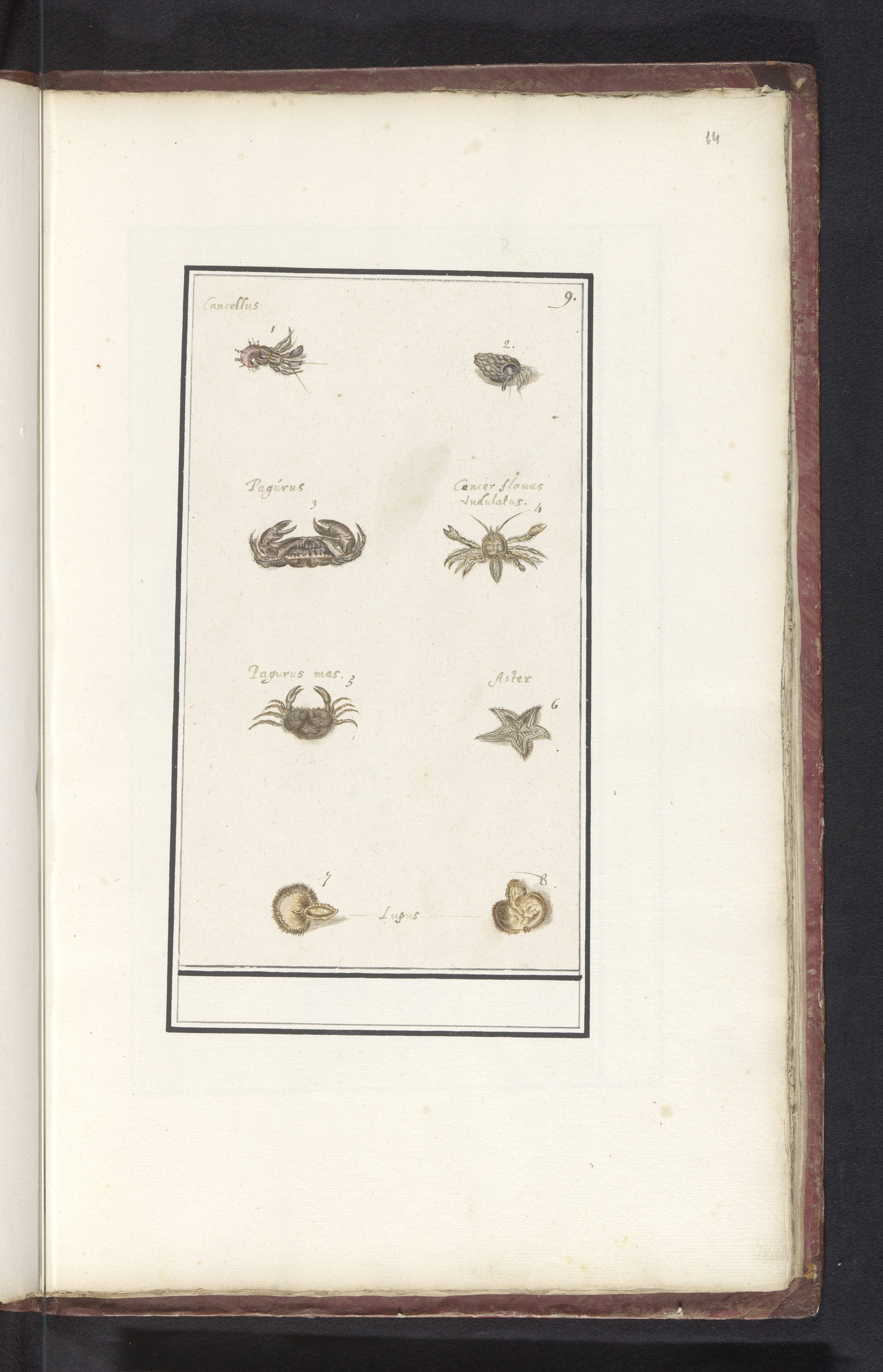 Blad met acht kreeftachtigen en weekdieren