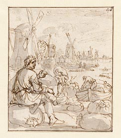 Voorstudie voor de titelprent uit "Het menselyk bedryf"