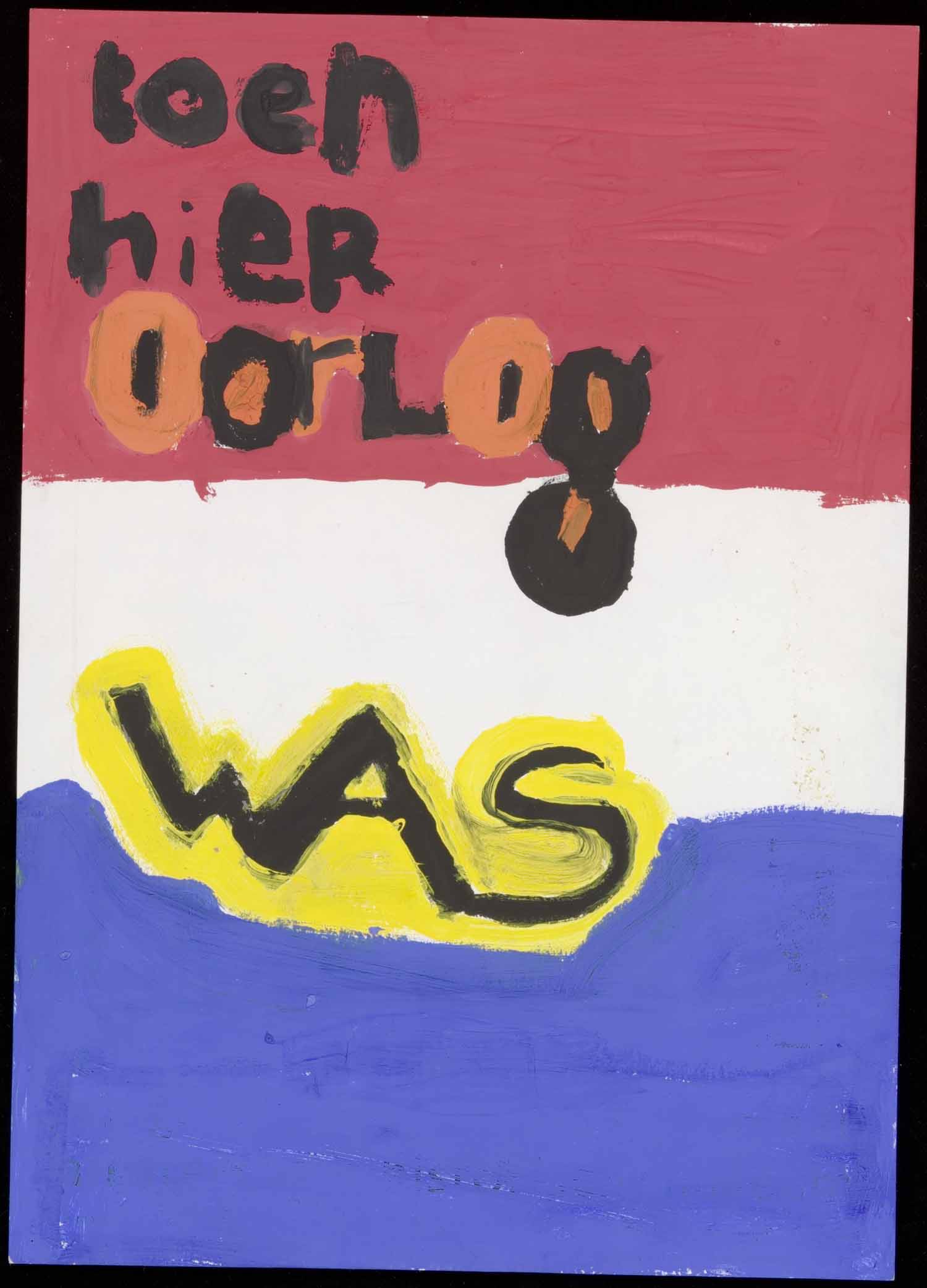 Opschrift 'Die Zijn Vrijhijd Moe is/Die neemt een Wi...