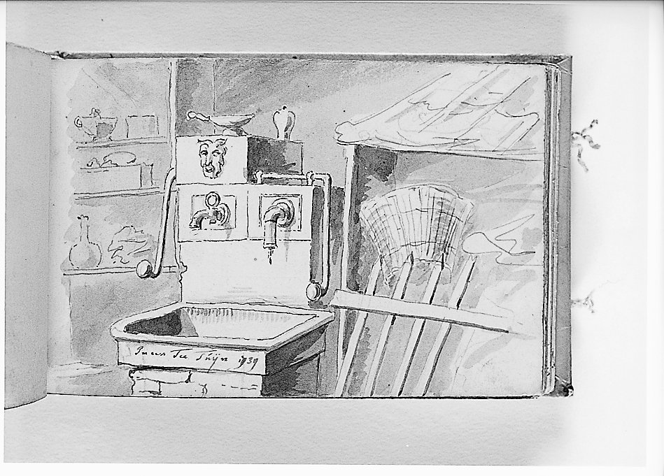 Ontwerpschetsen van de zijstukken en zwikvullingen v...