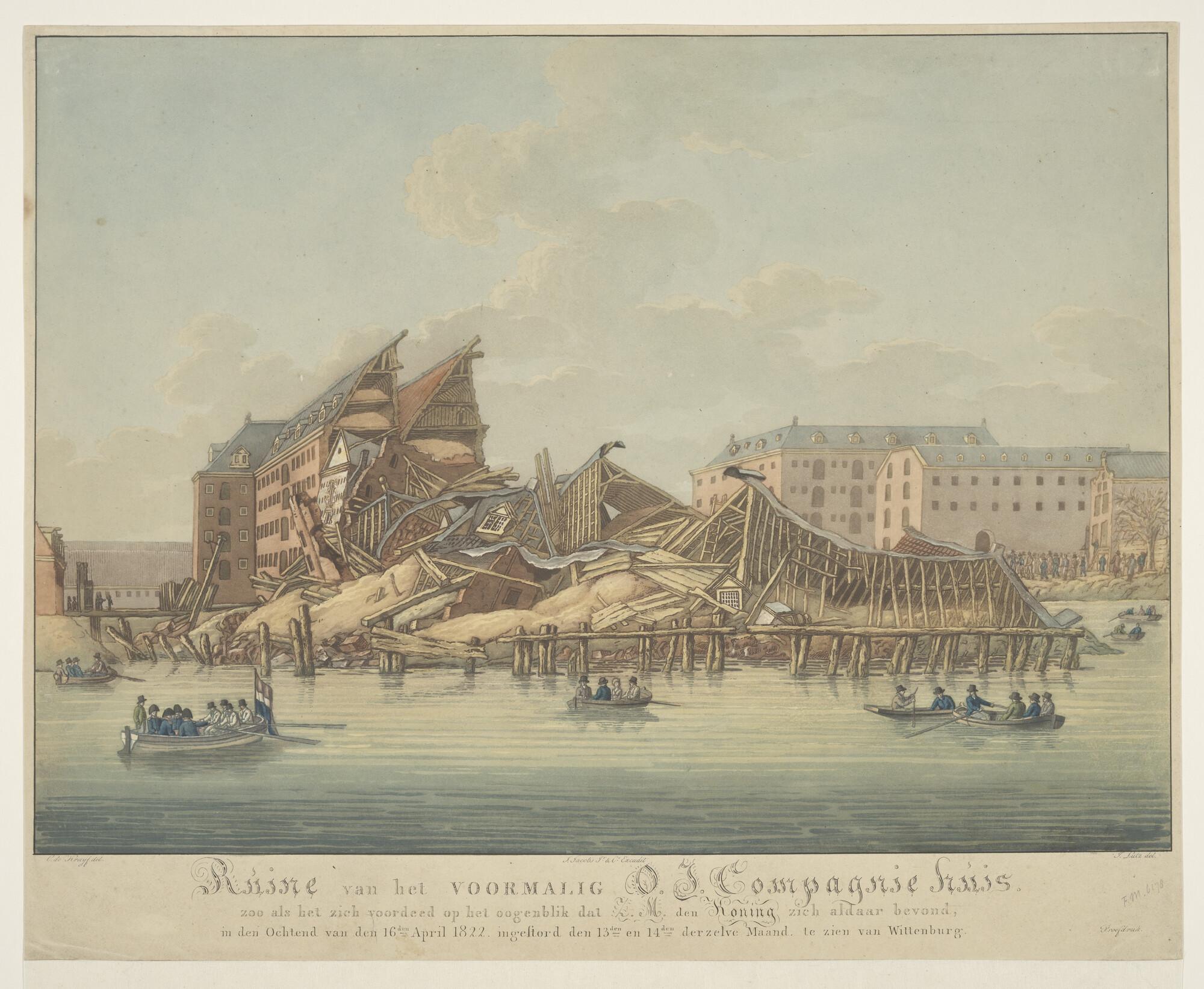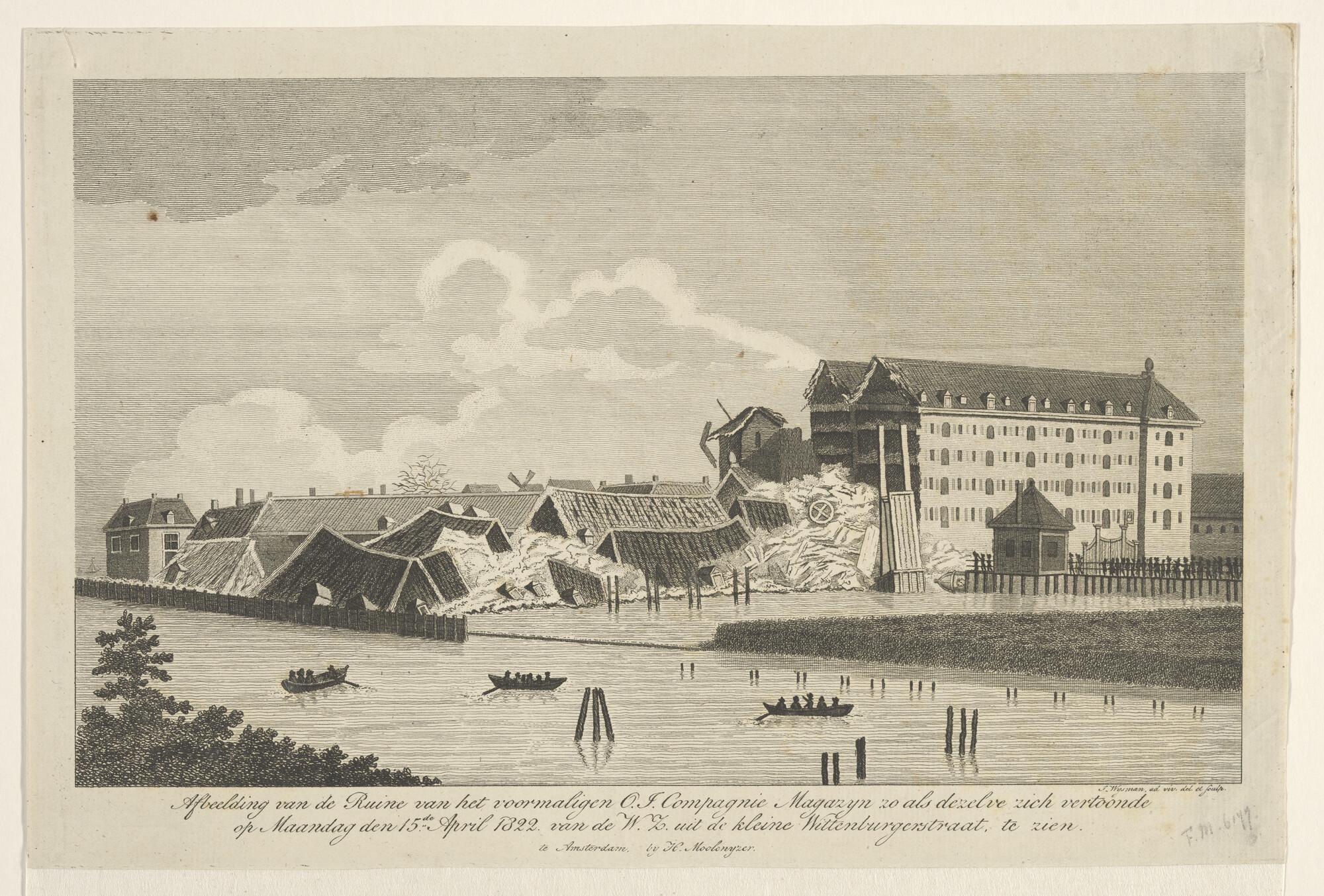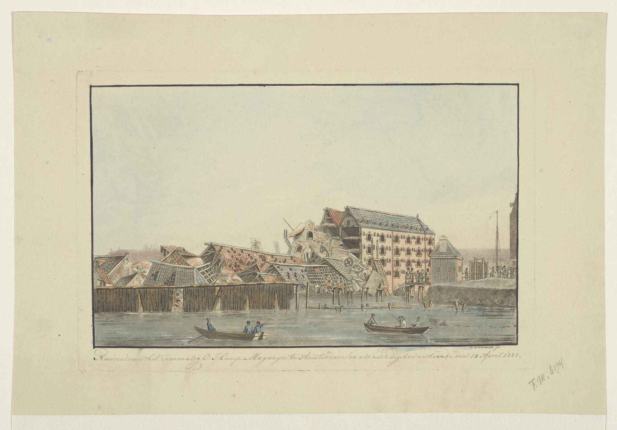 Ruïne van het VOC-magazijn te Amsterdam, na de insto...