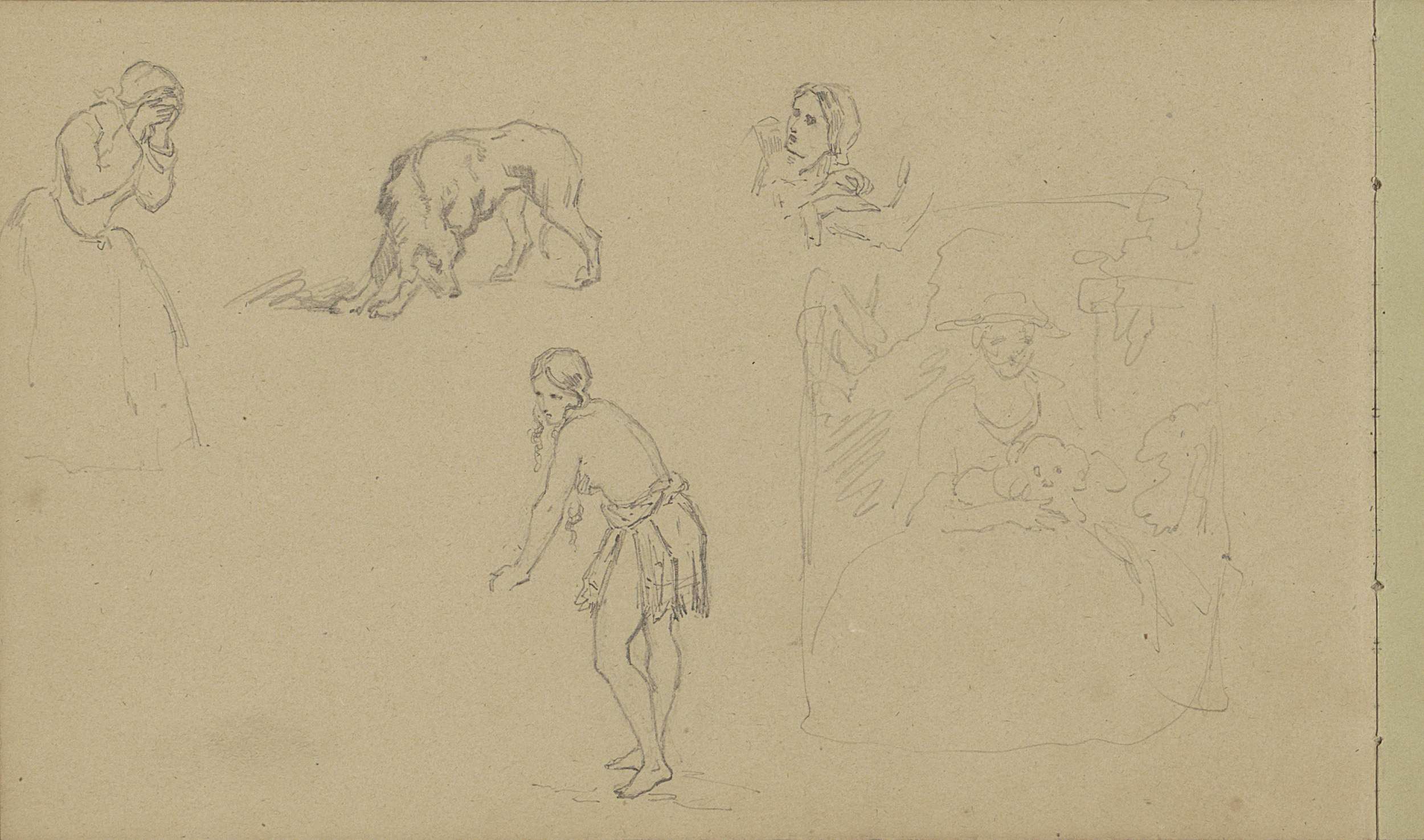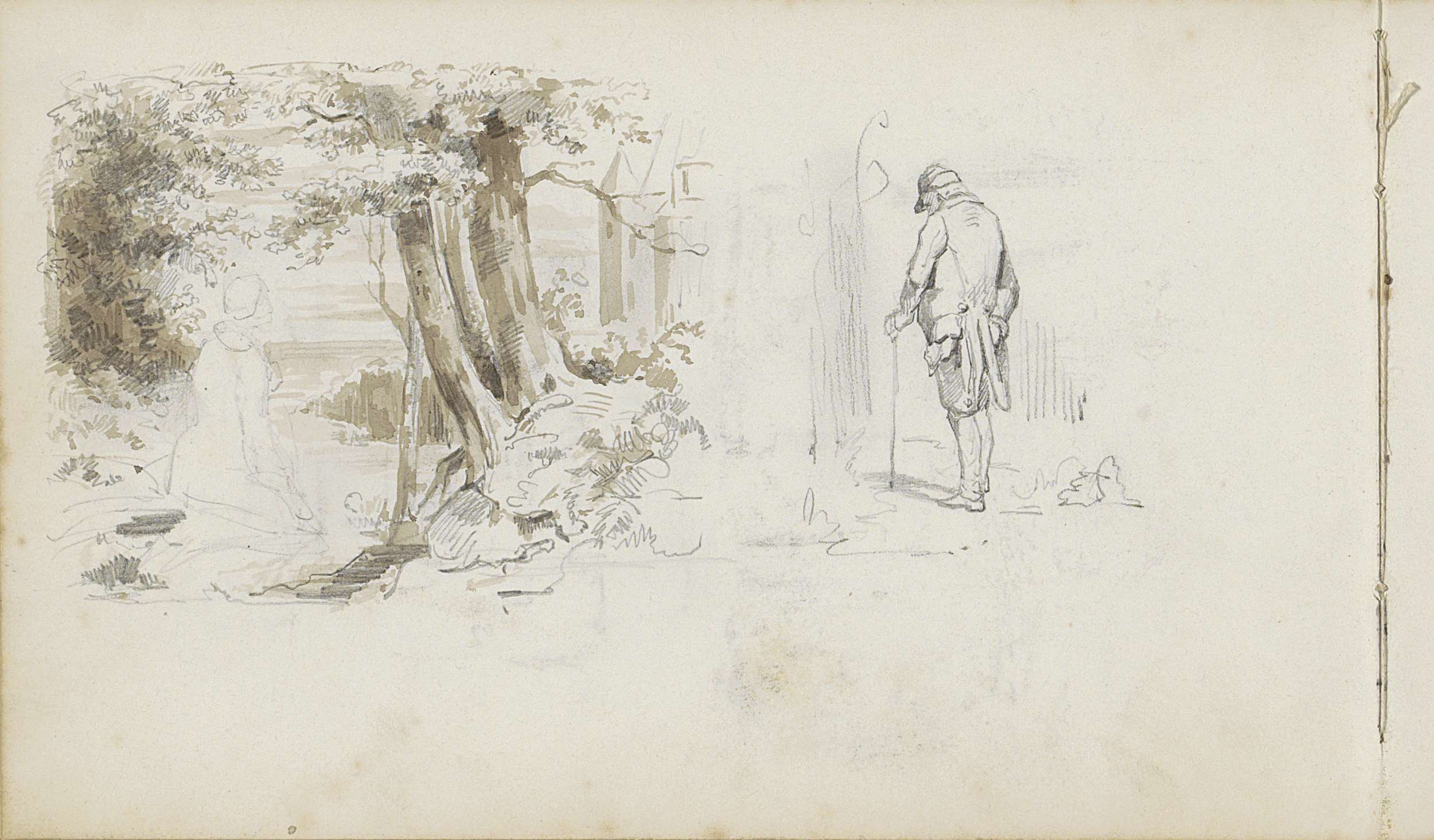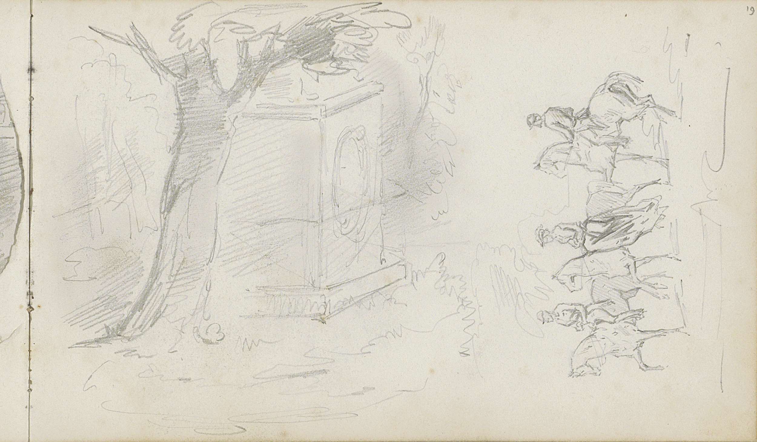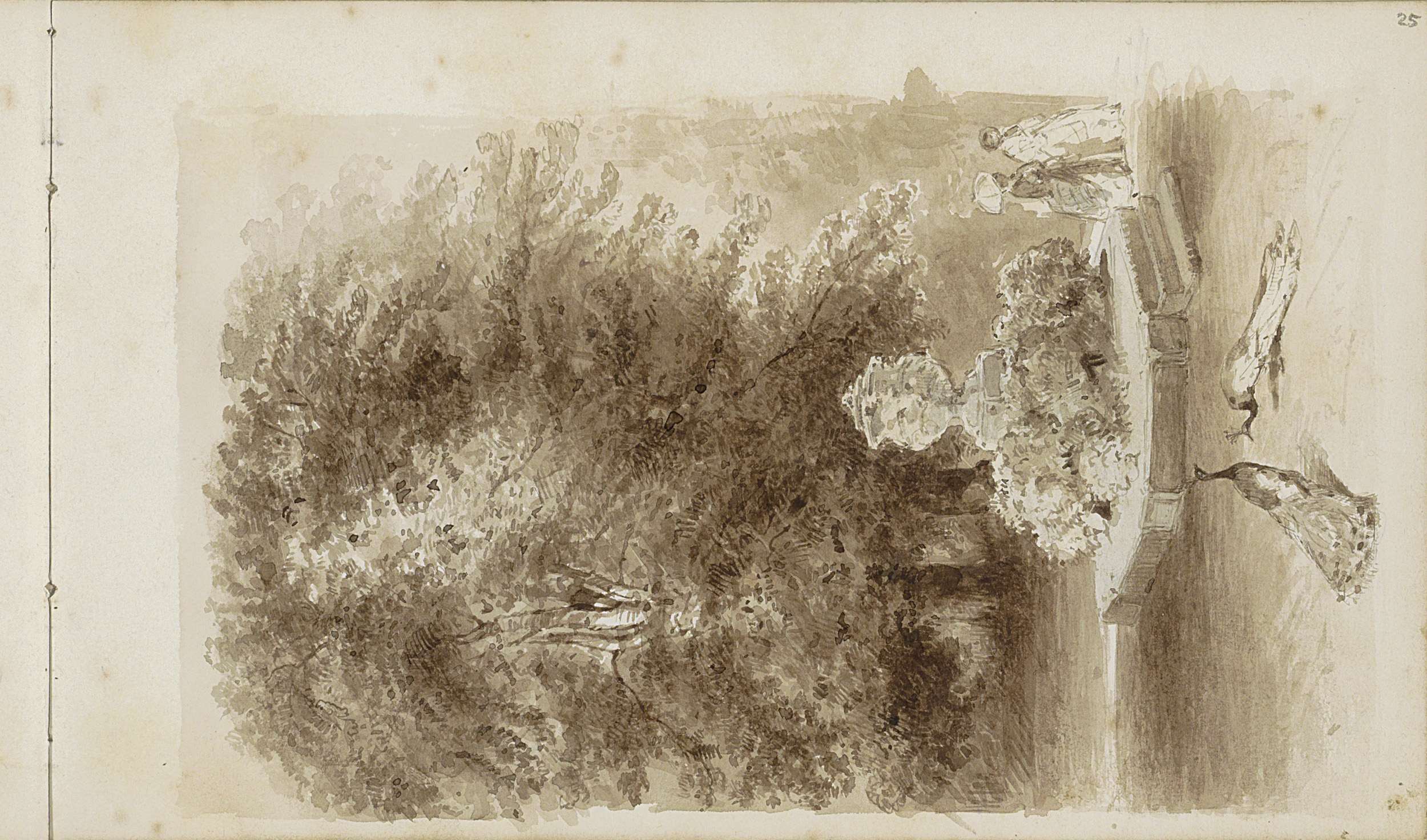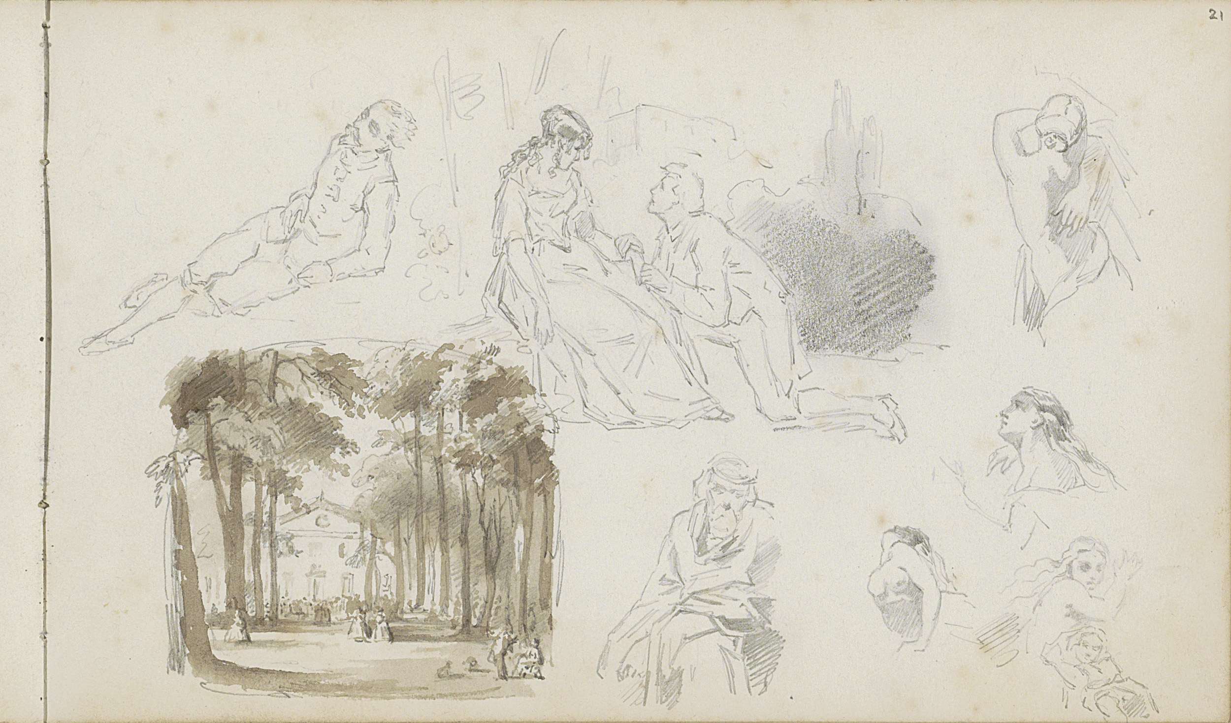 Studieblad met (naakte) figuren en de oprijlaan van ...