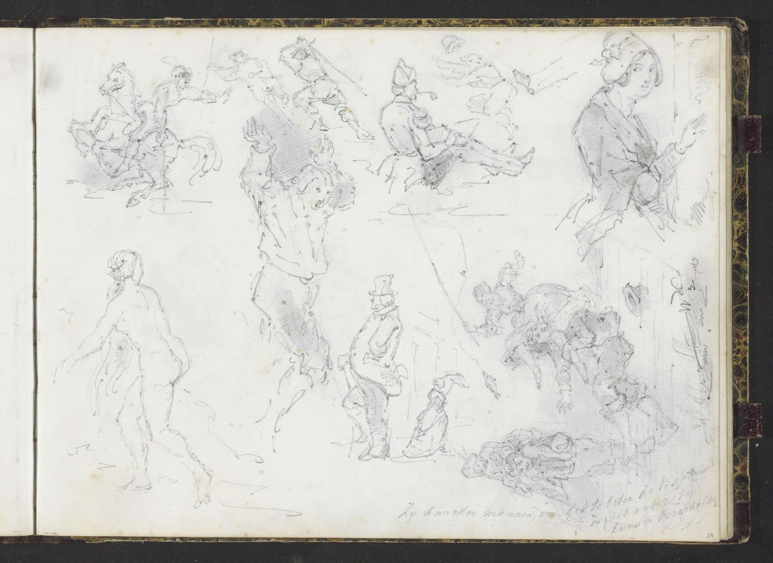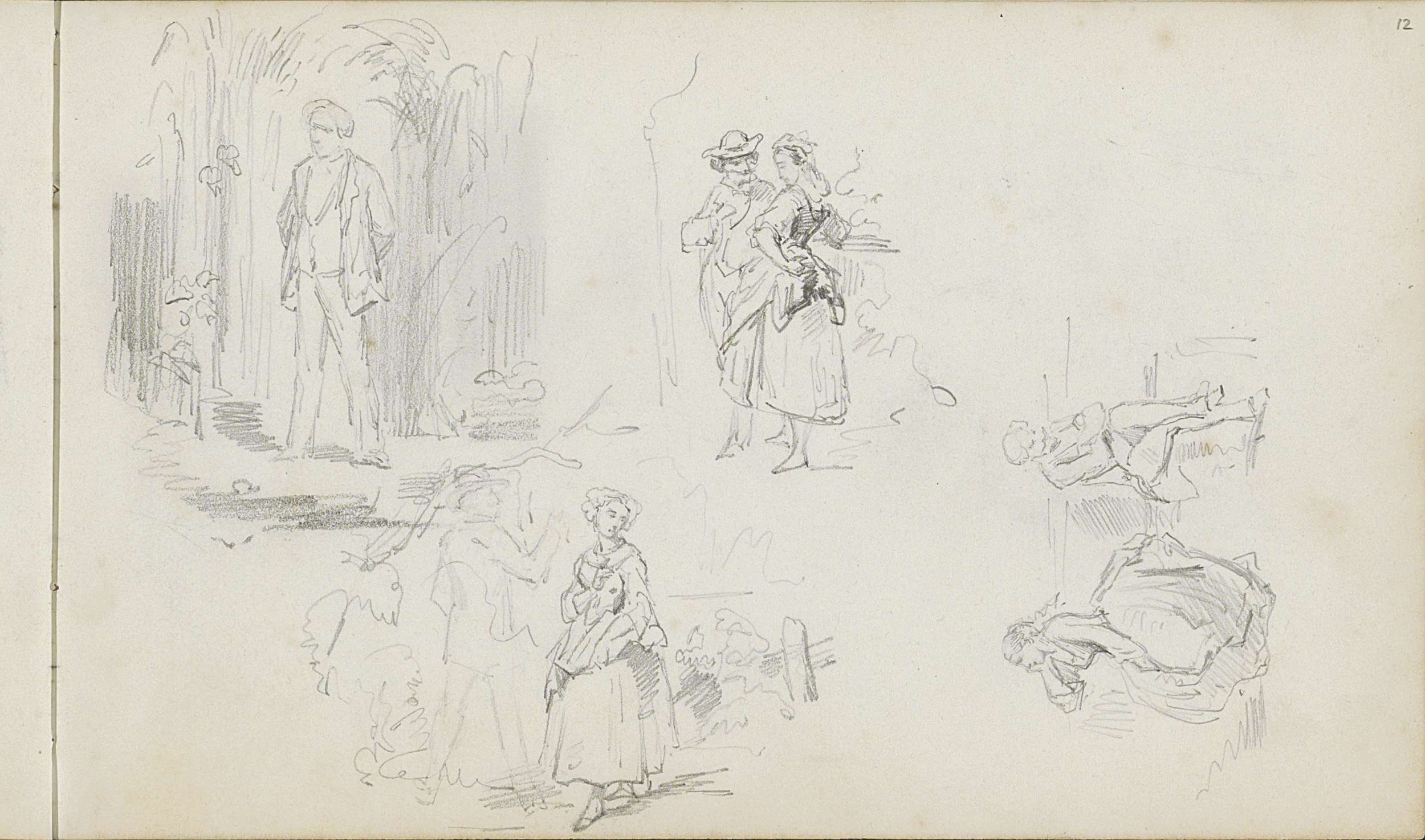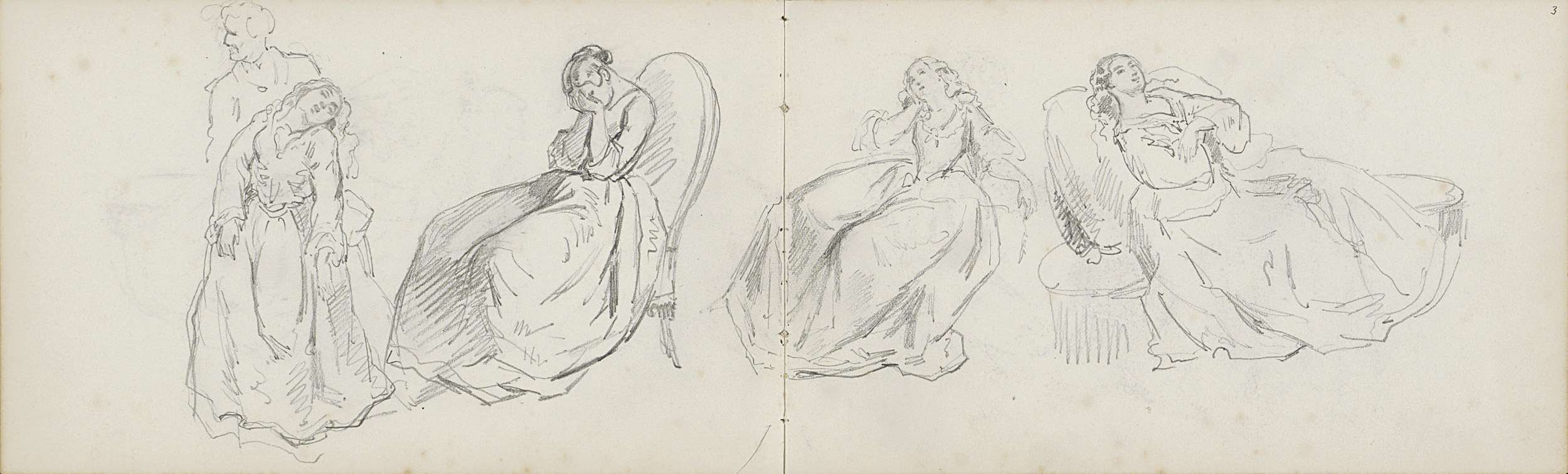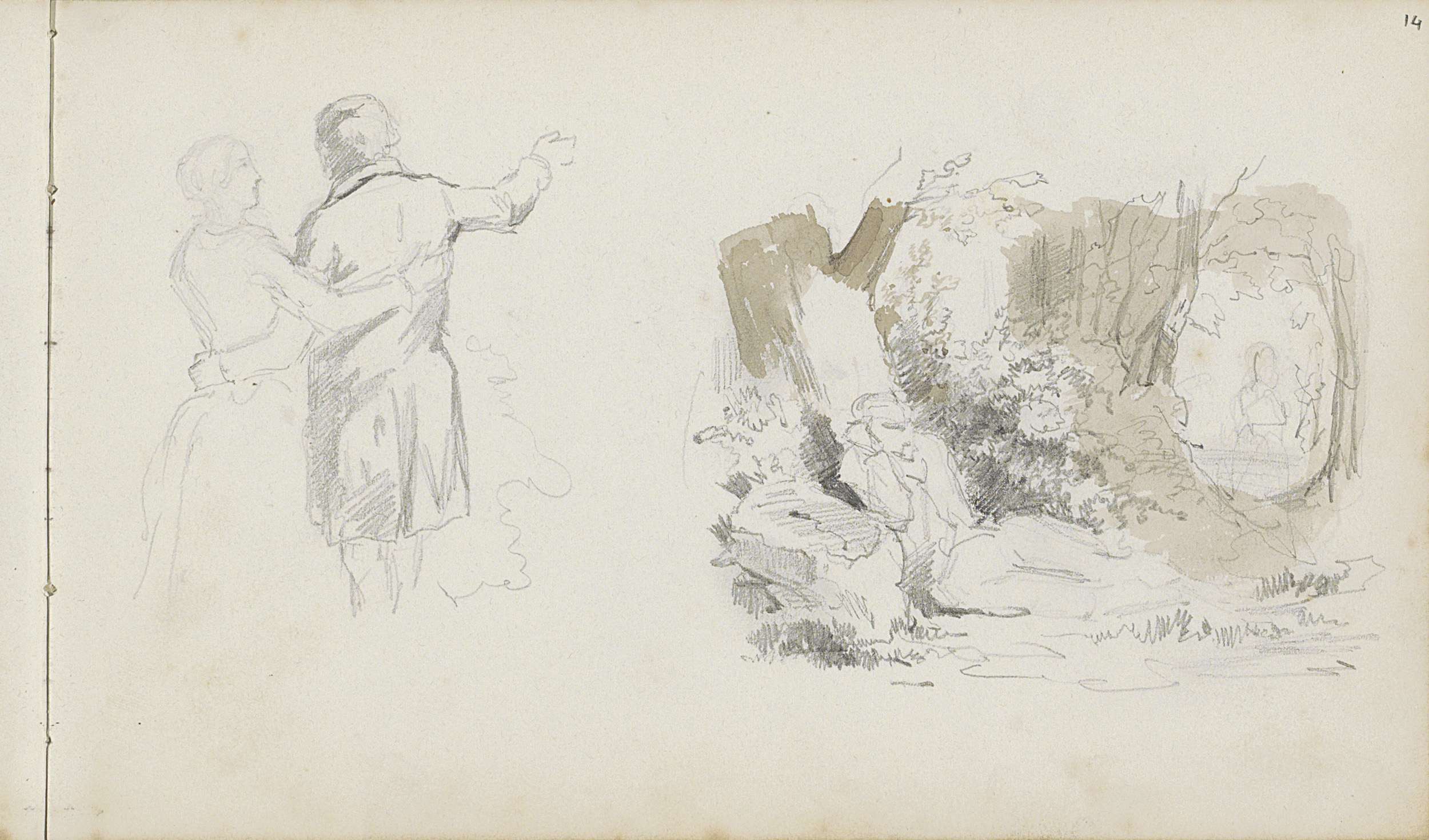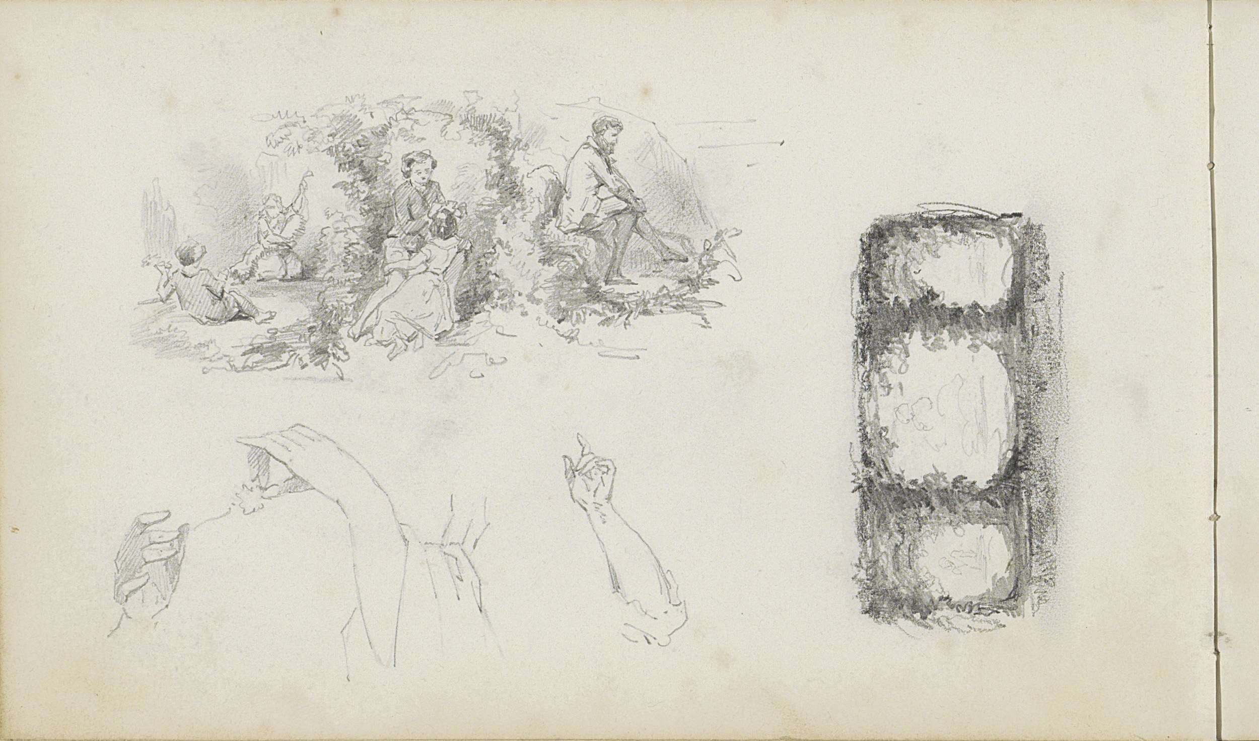 Studieblad met (naakte) figuren en de oprijlaan van ...