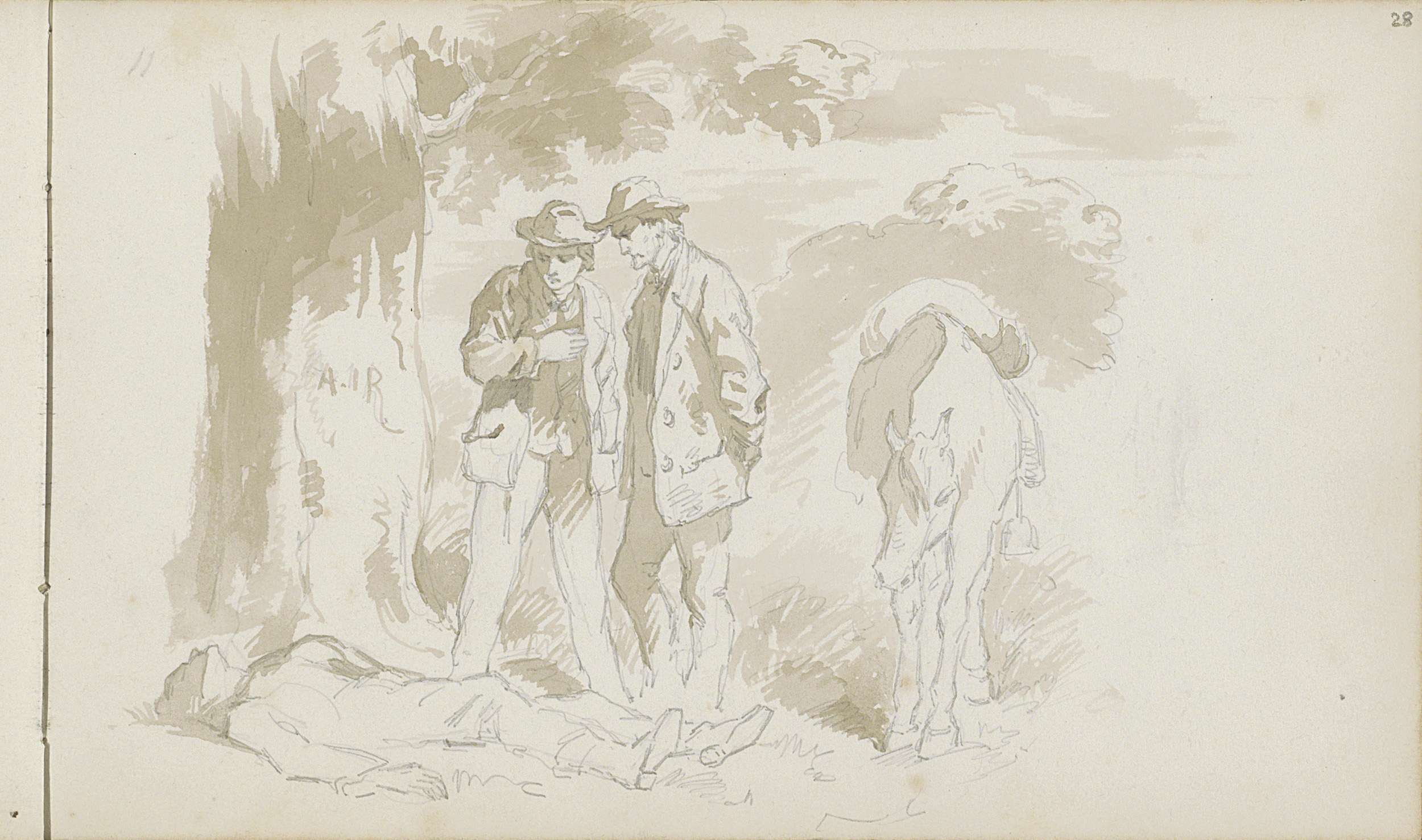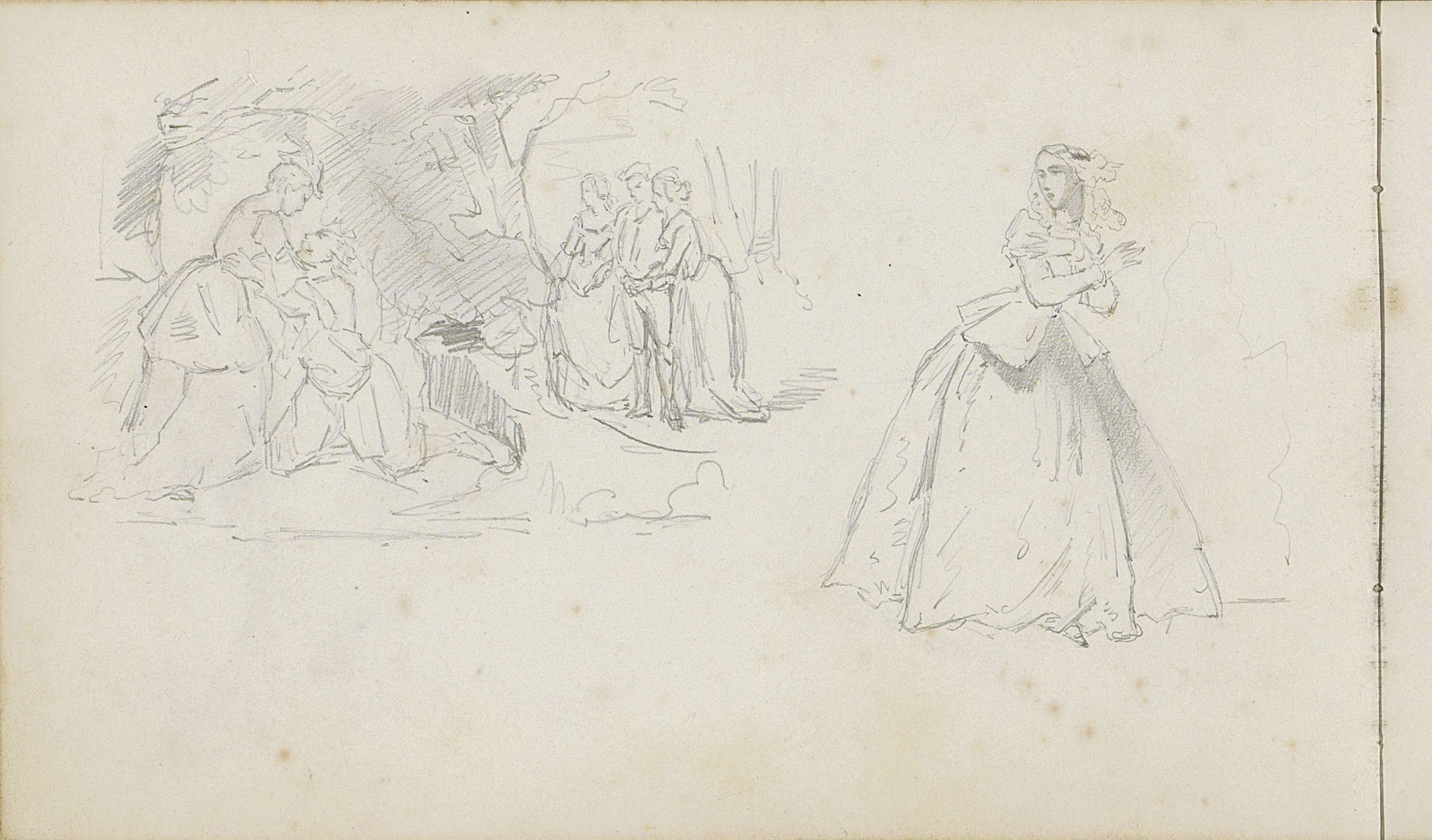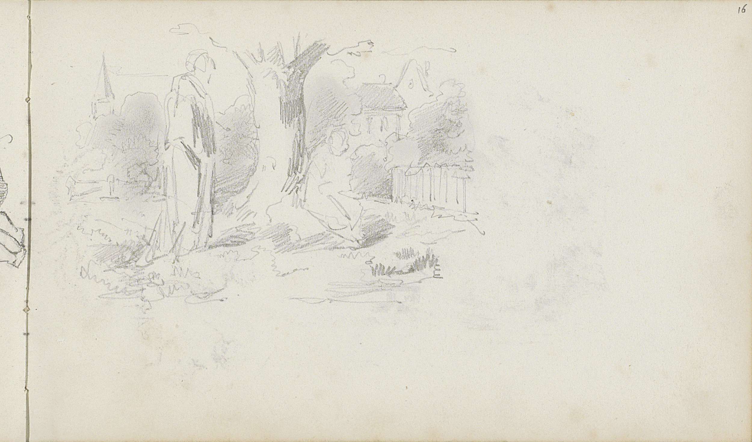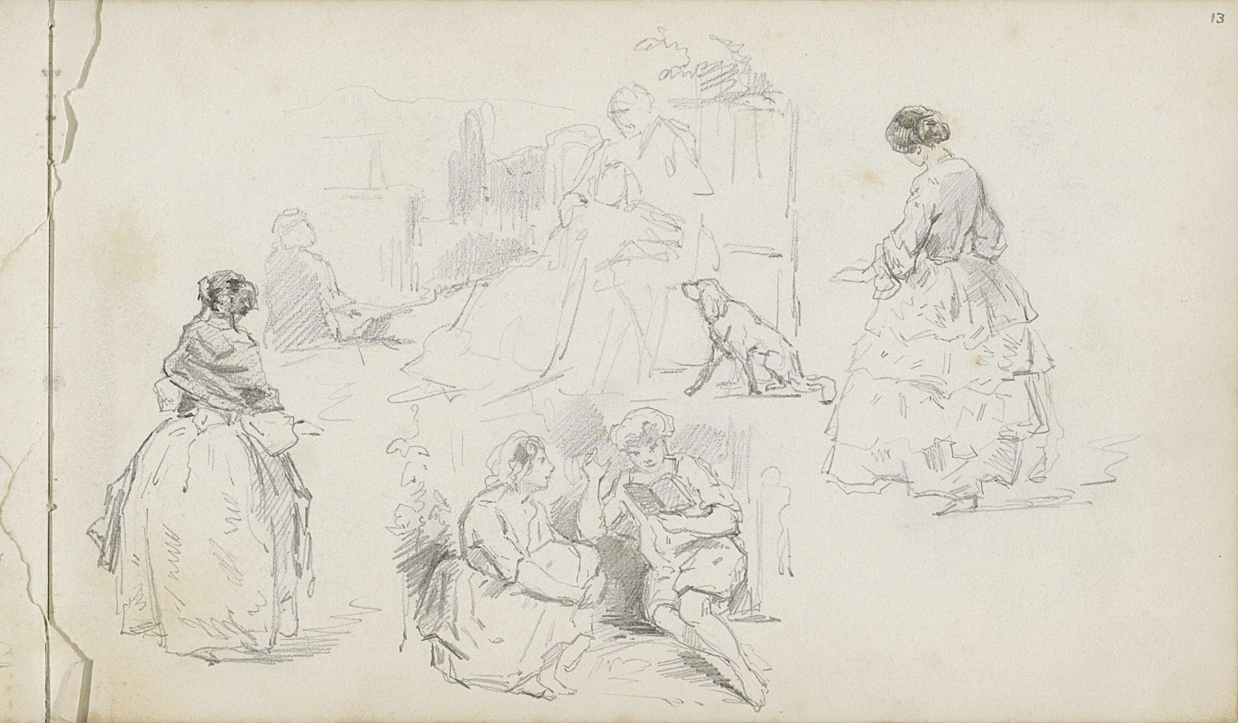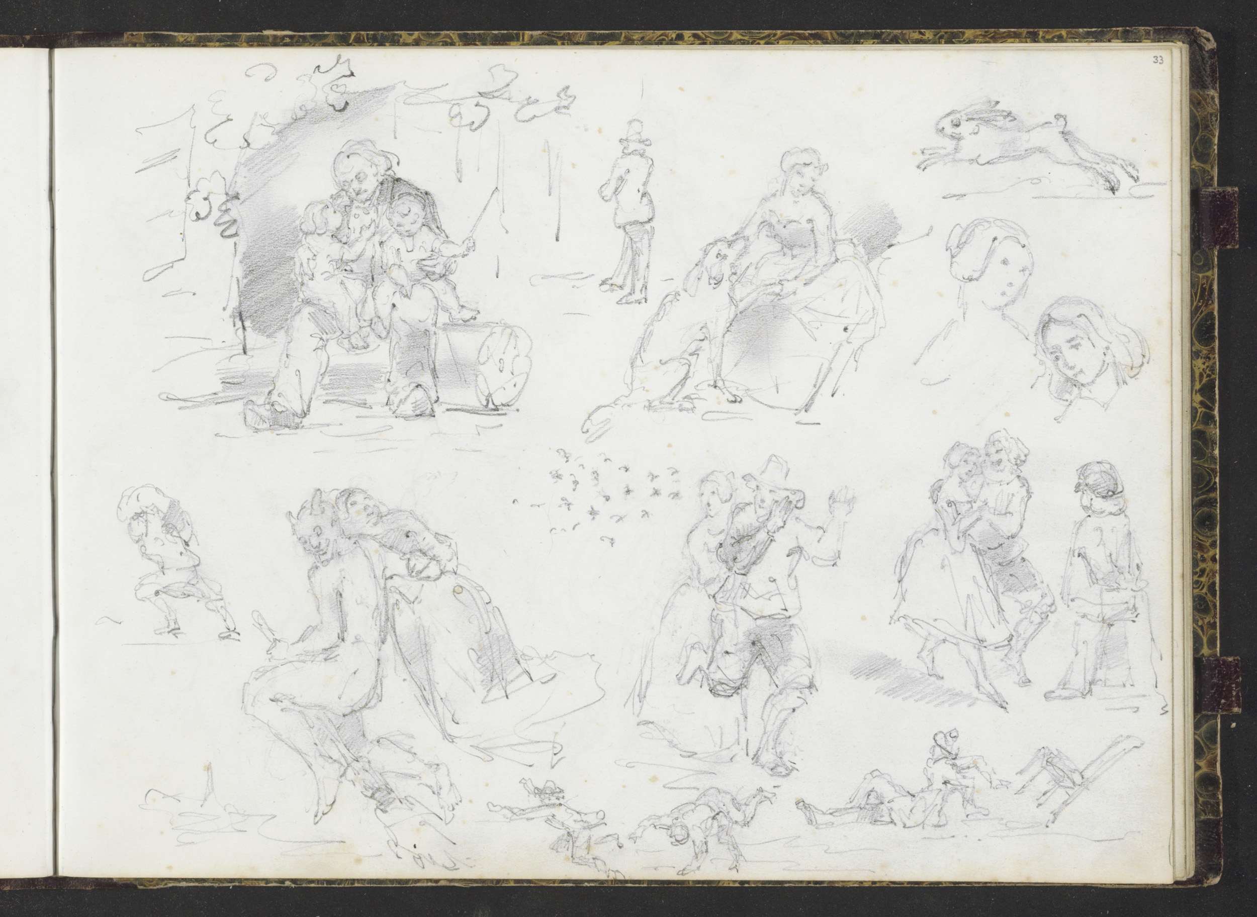 Studieblad met (naakte) figuren en de oprijlaan van ...