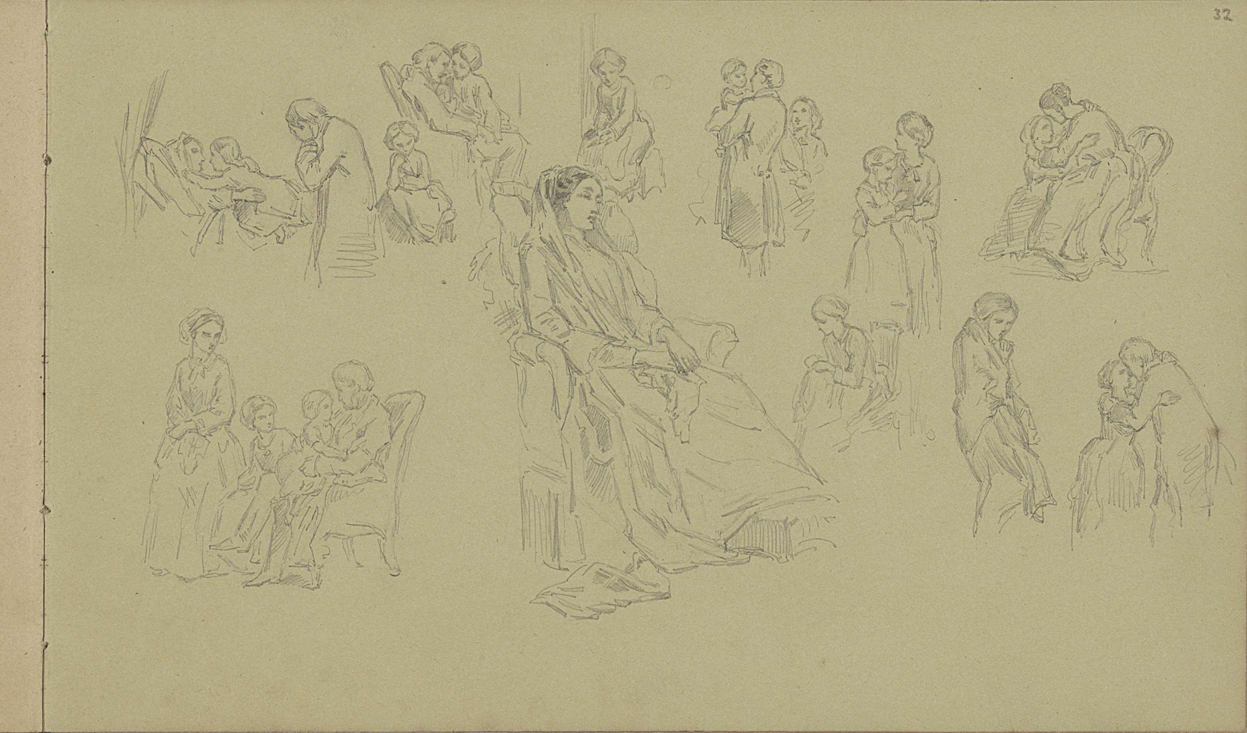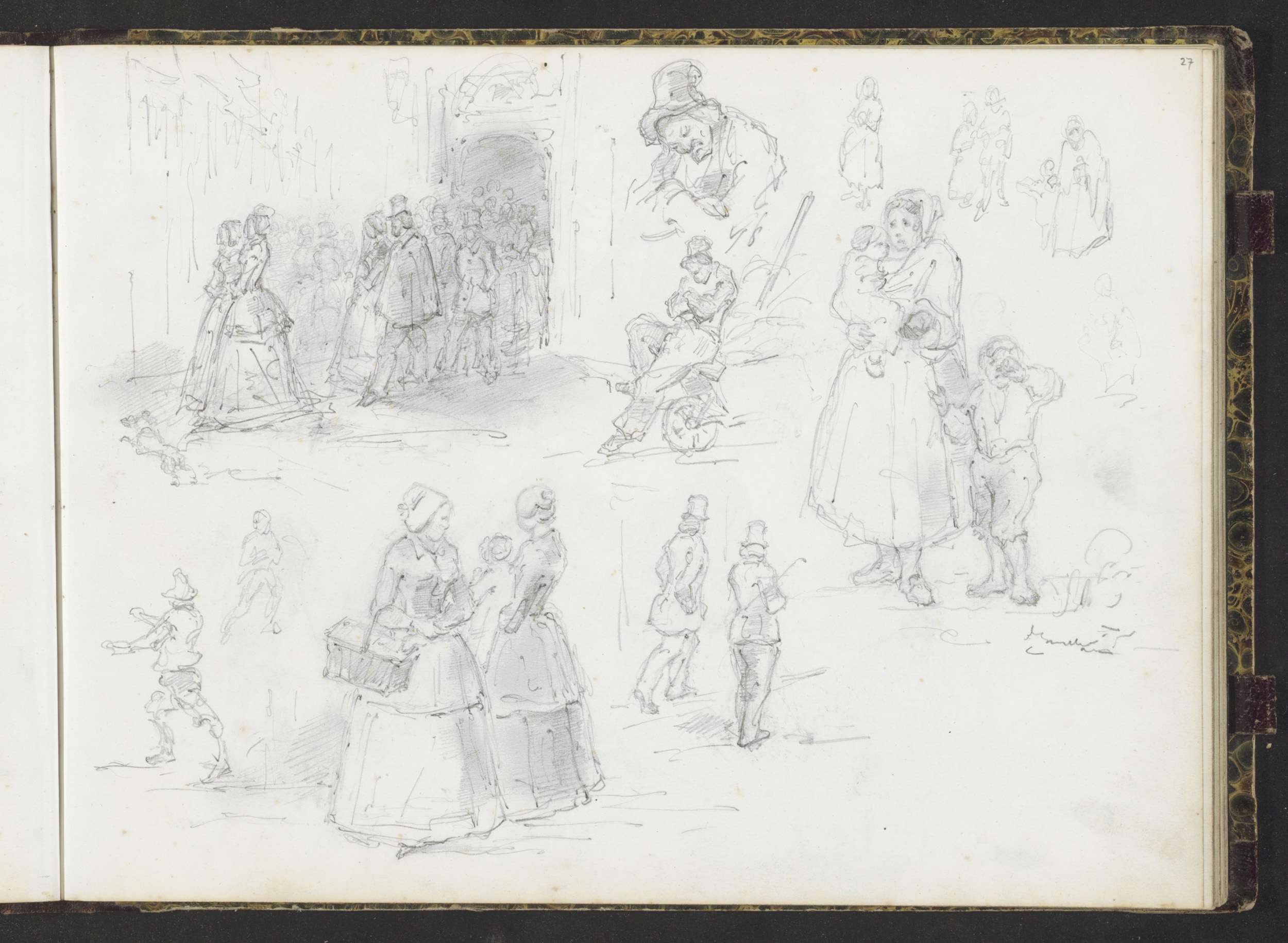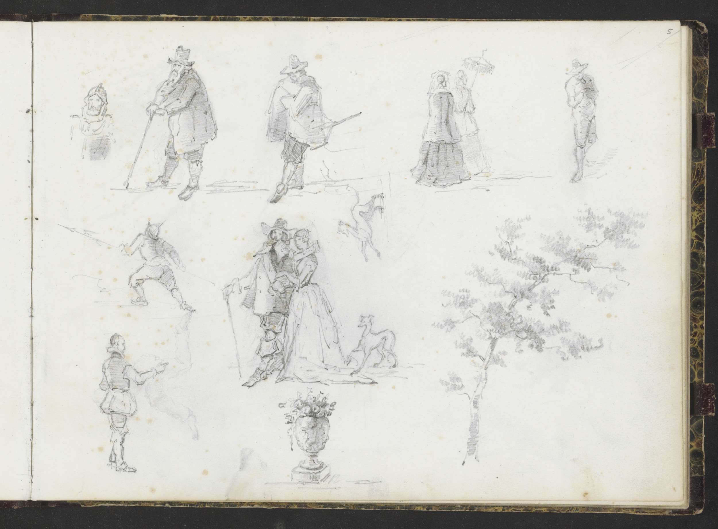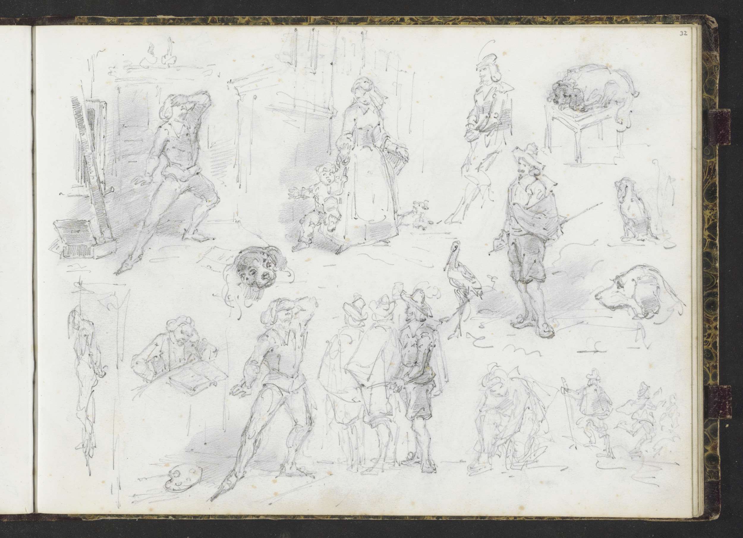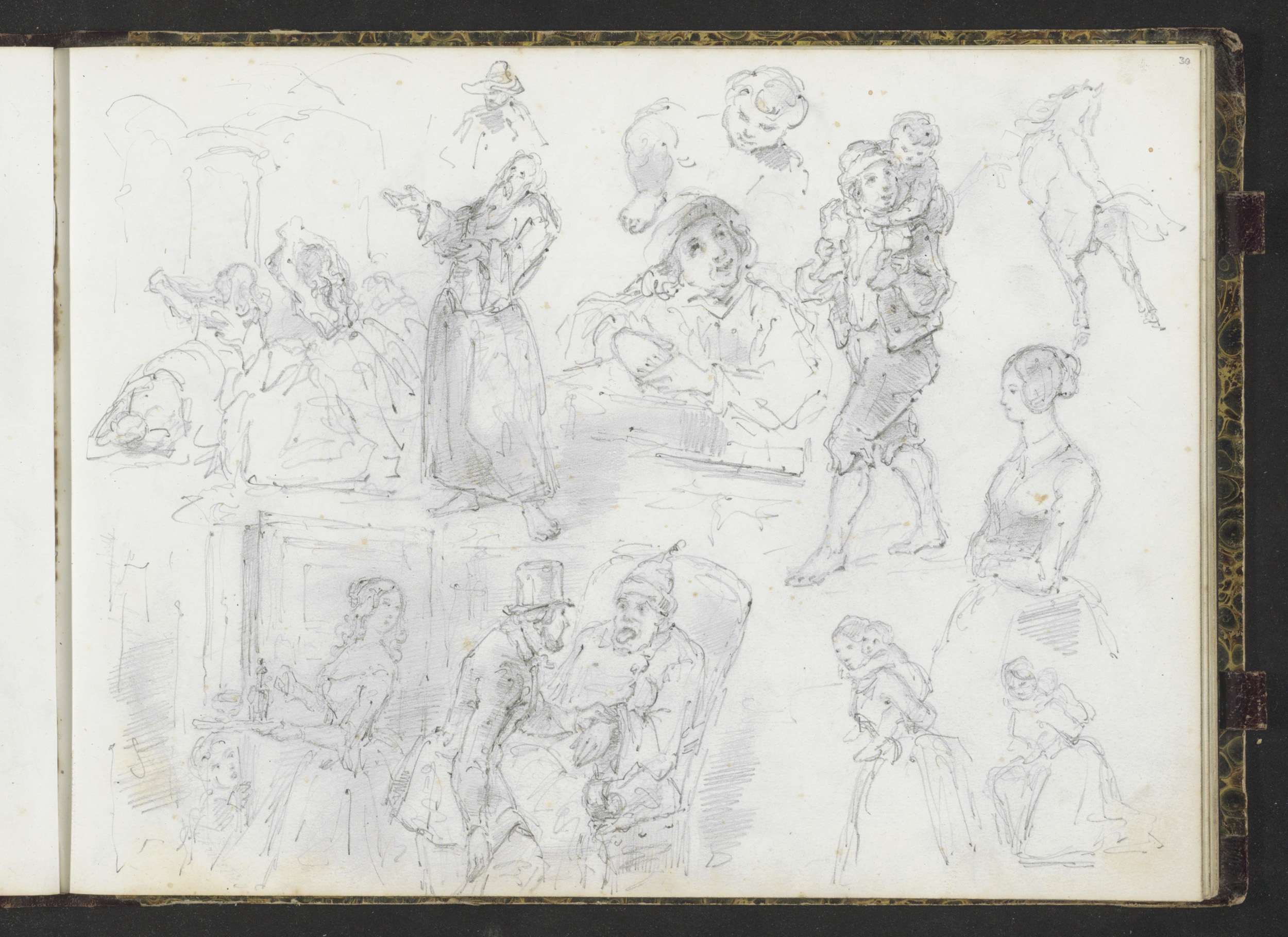 Studieblad met (naakte) figuren en de oprijlaan van ...