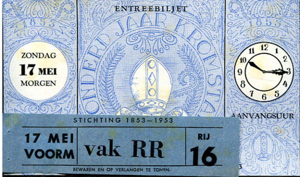 Entreebewijs '100 jaar Kromstaf' blauw papier, 17-5-...