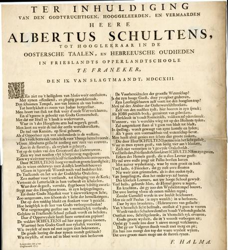 Rijmprent ter gelegenheid van de inhuldiging van dhr...