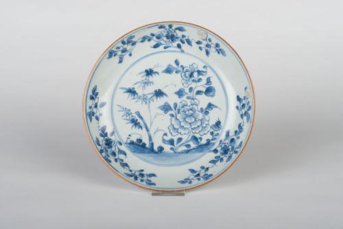 Chinees bord gedecoreerd met bamboe en pioenrozen