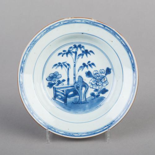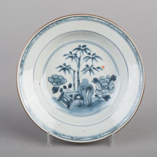Chinese Kangxi schotel gedecoreerd met een lijs en i...