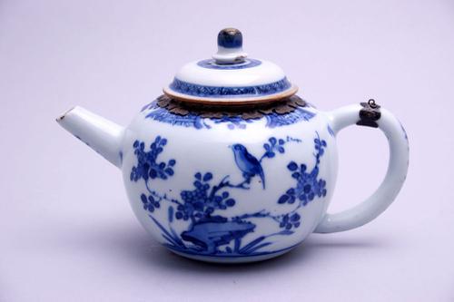 Theepot van van Chinees porselein met zilveren montuur