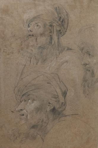 Drie studies van het hoofd van een bejaarde man met ...