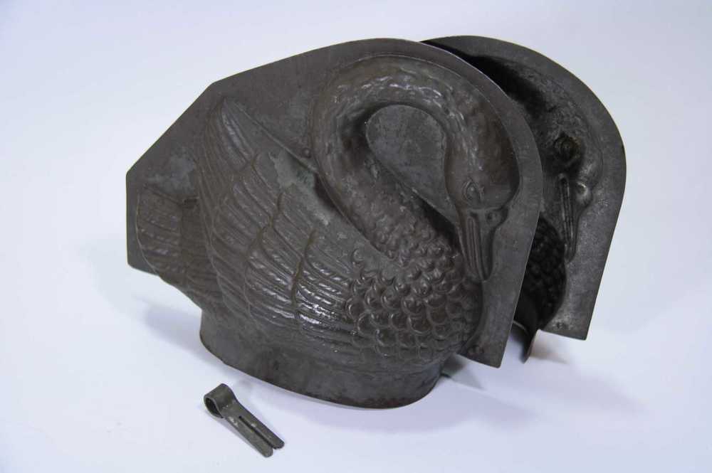 Chocoladevorm van metaal in de vorm van een zwaan va...