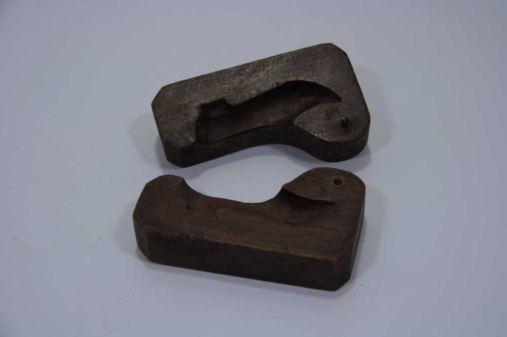 Marsepeinvorm van gips met afbeelding van een vogel ...