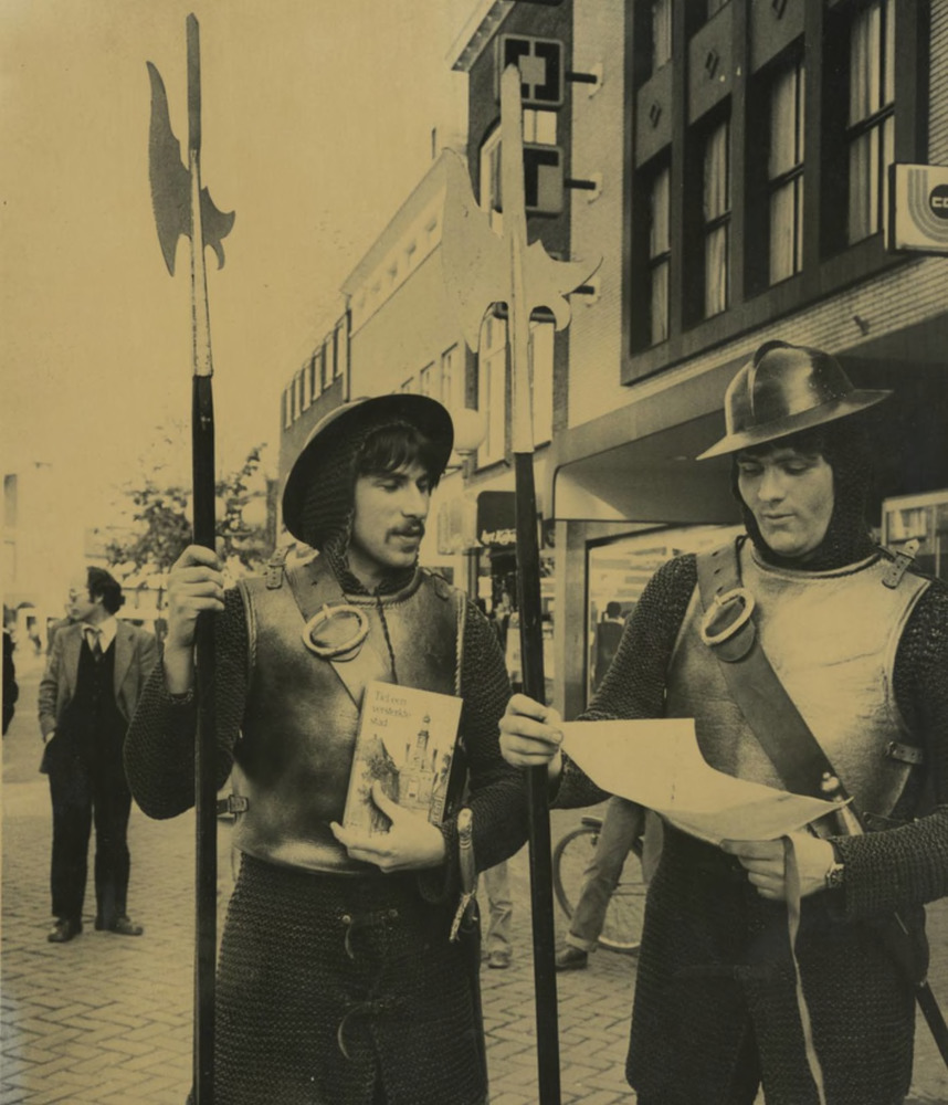 Twee hellebaardiers maken in de Waterstraat bekend d...