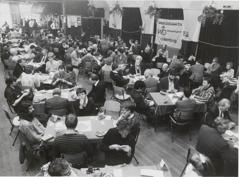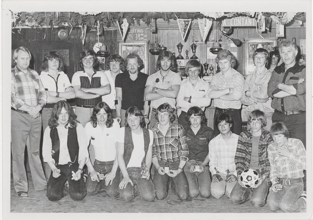 Schaatsruilbeurs in café Zwijnen in 1982. Dik Geurts...
