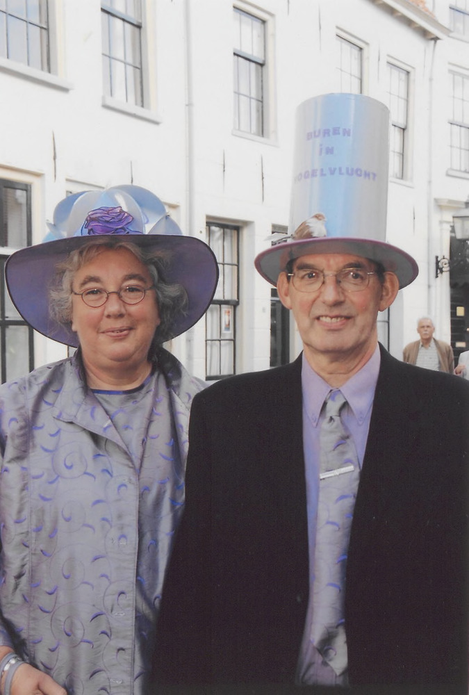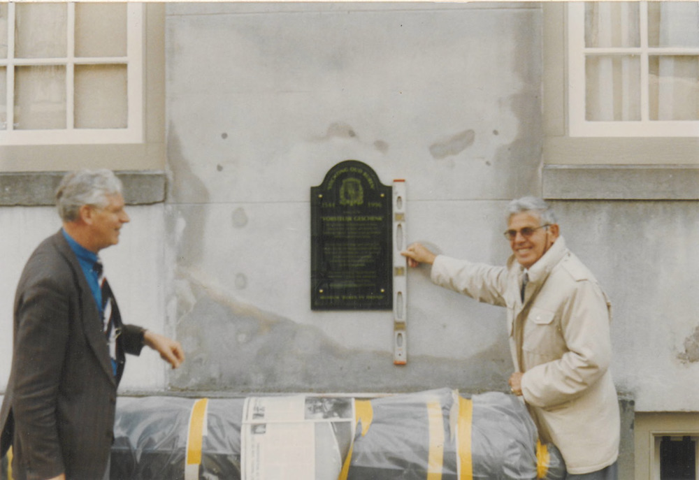 D. J. . Thijsen en M. Tinga bij het bord tegen de mu...