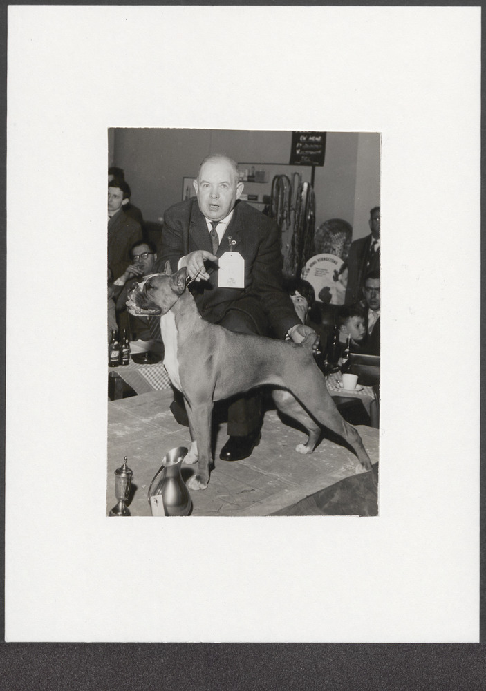 Foto van man met hond bij keuring