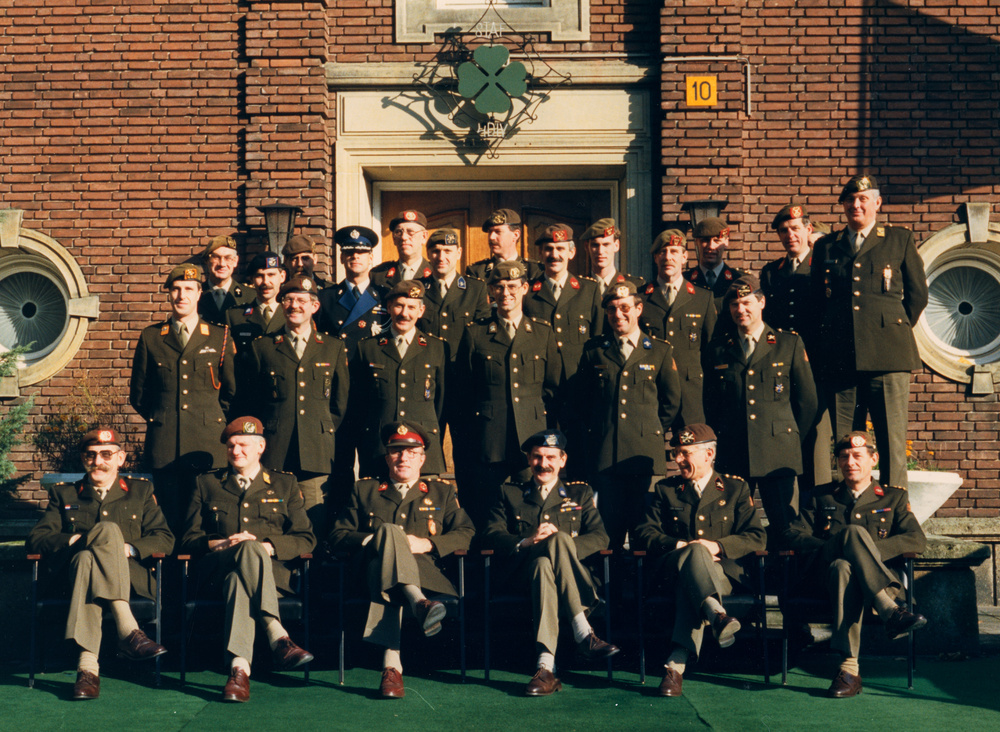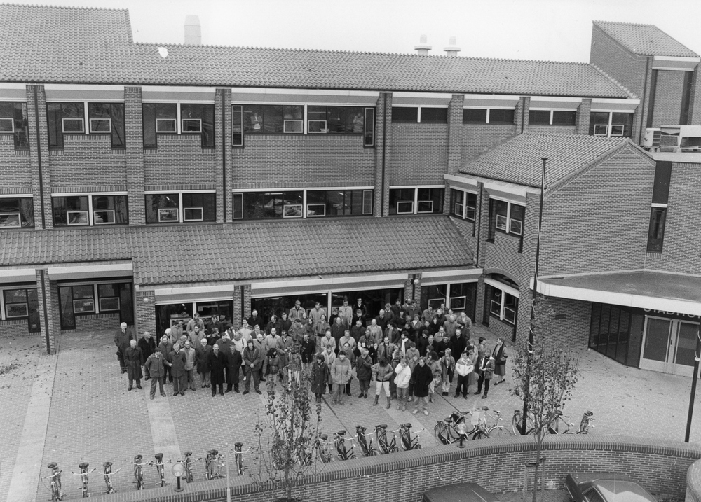 Groepsfoto staf 4 Divisie voor het stafgebouw op de ...