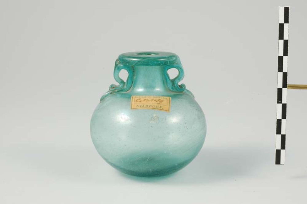 Balsamarium van lichtgroen helder glas uit de Romein...
